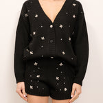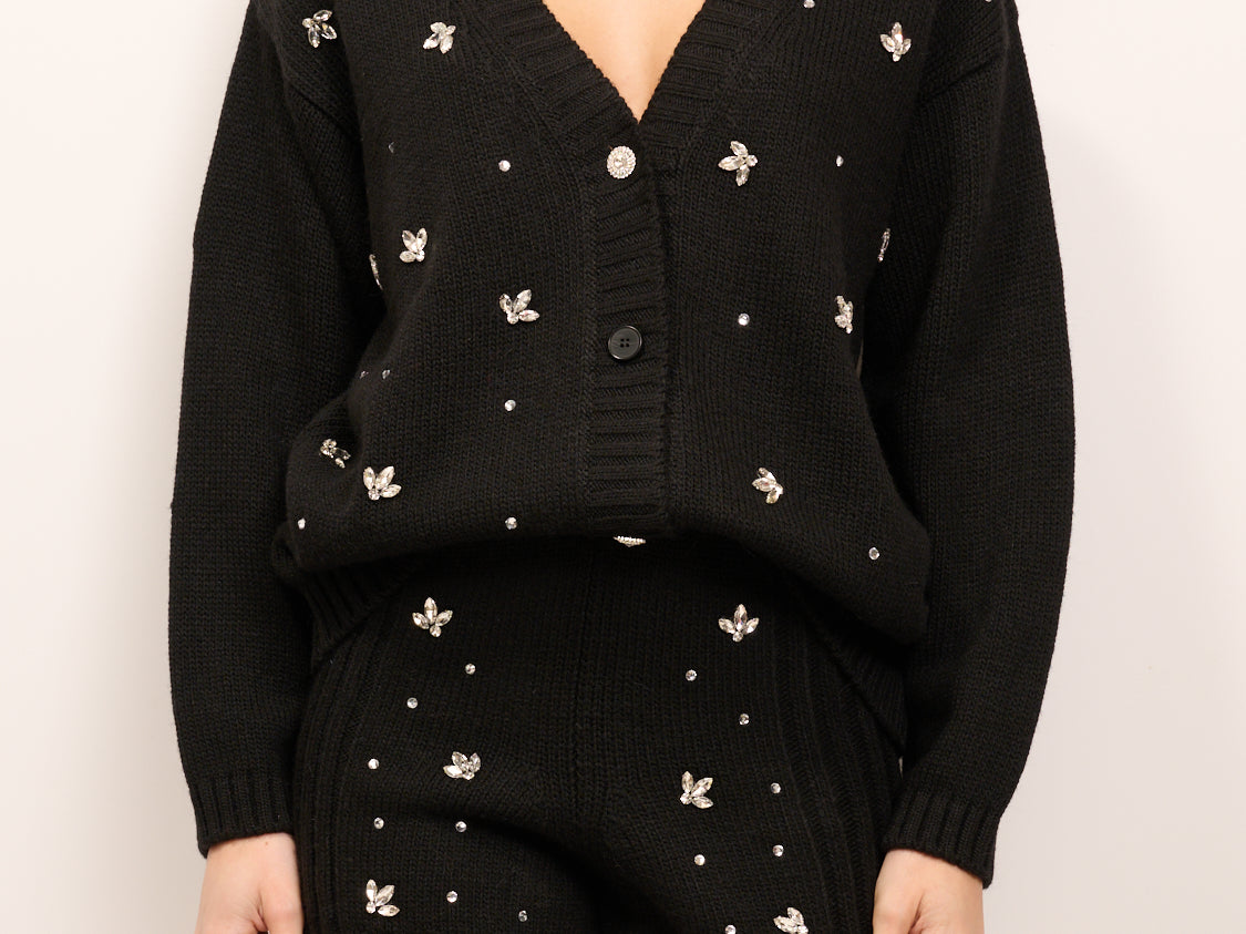 VICOLO - MAGLIA BOTTONI STRASS - NERO