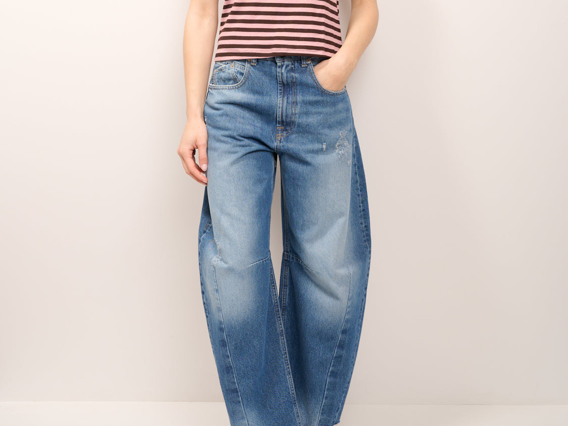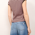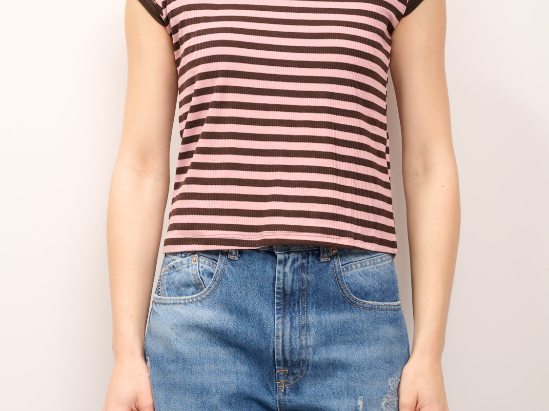 TENSIONE IN - T-SHIRT COSTINA RIGATA - MORO/ROSA