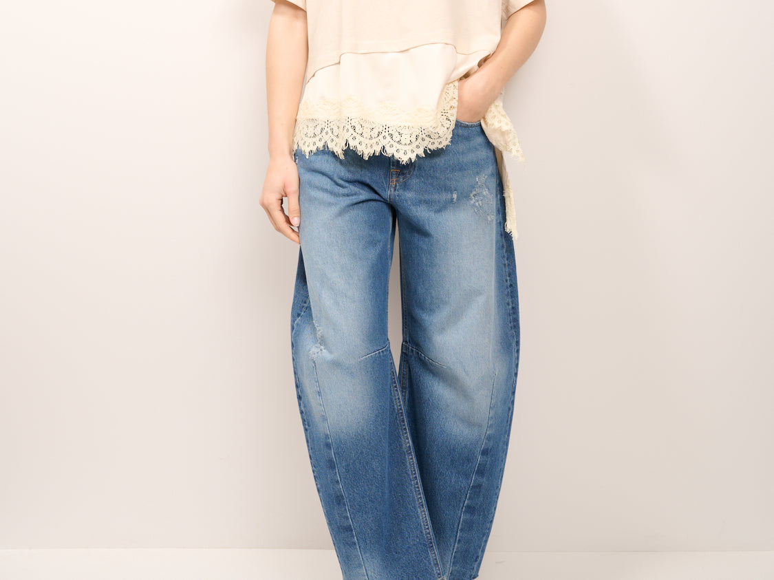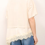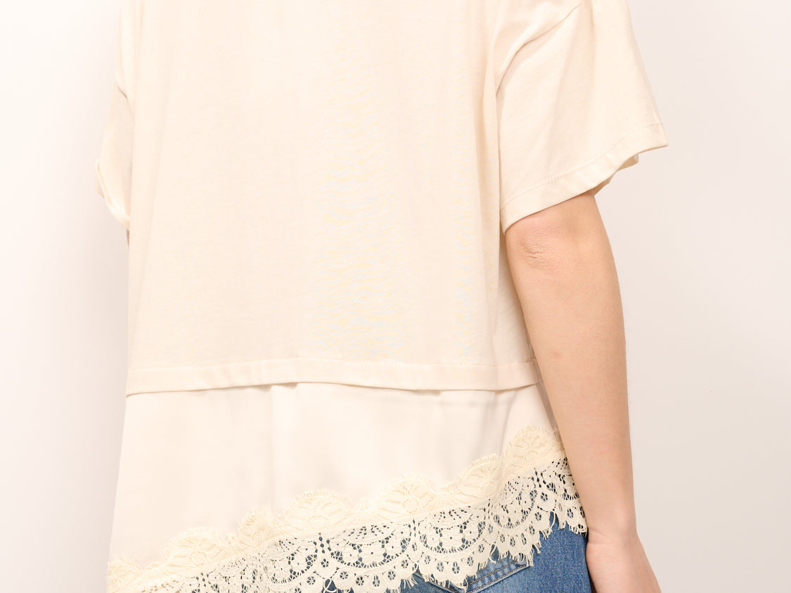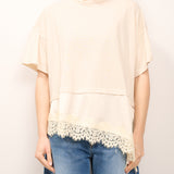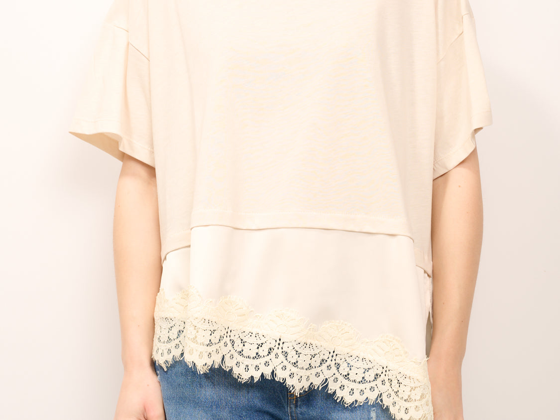 DIXIE - T-SHIRT TINTA UNNITA PIZZO - BEIGE