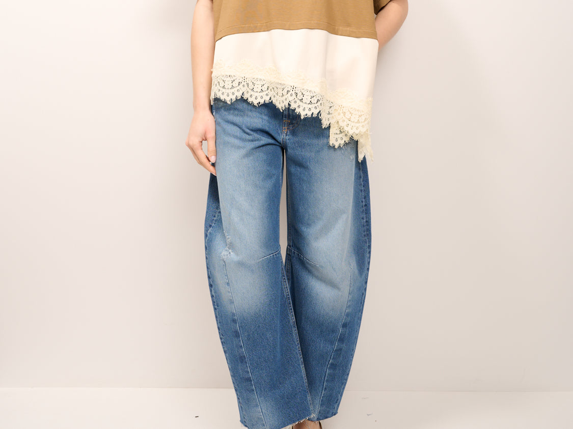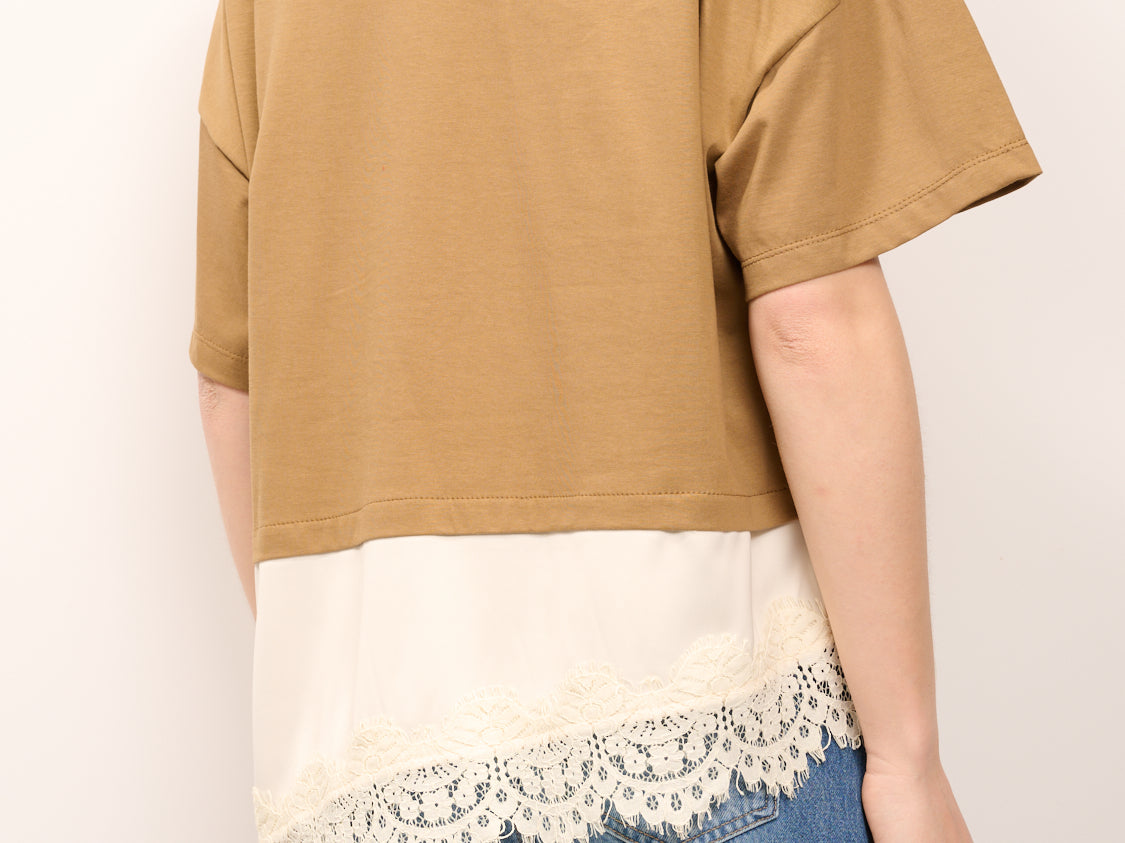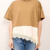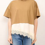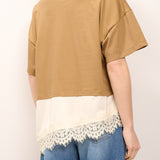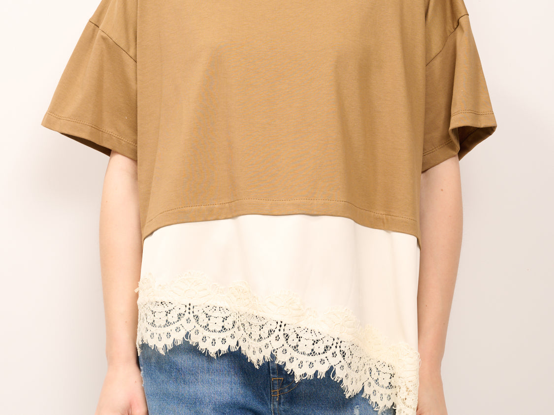 DIXIE - T-SHIRT TINTA UNNITA PIZZO - CAMEL