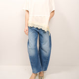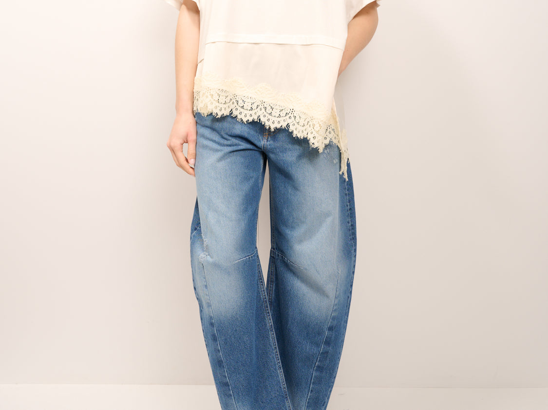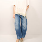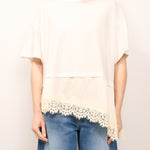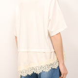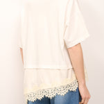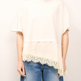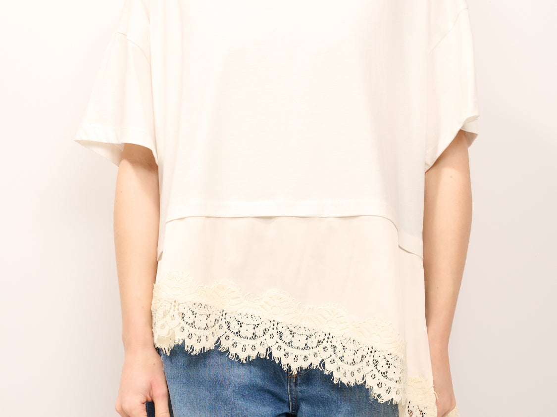 DIXIE - T-SHIRT TINTA UNNITA PIZZO - PANNA