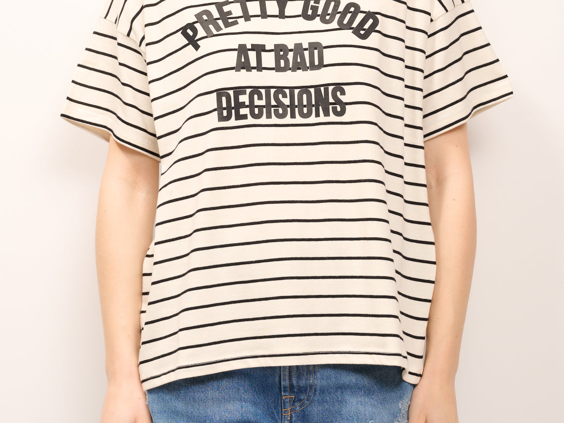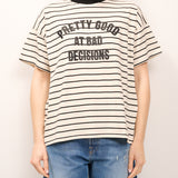 VICOLO - T-SHIRT RIGATA - NATURALE/NERO