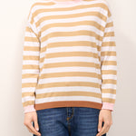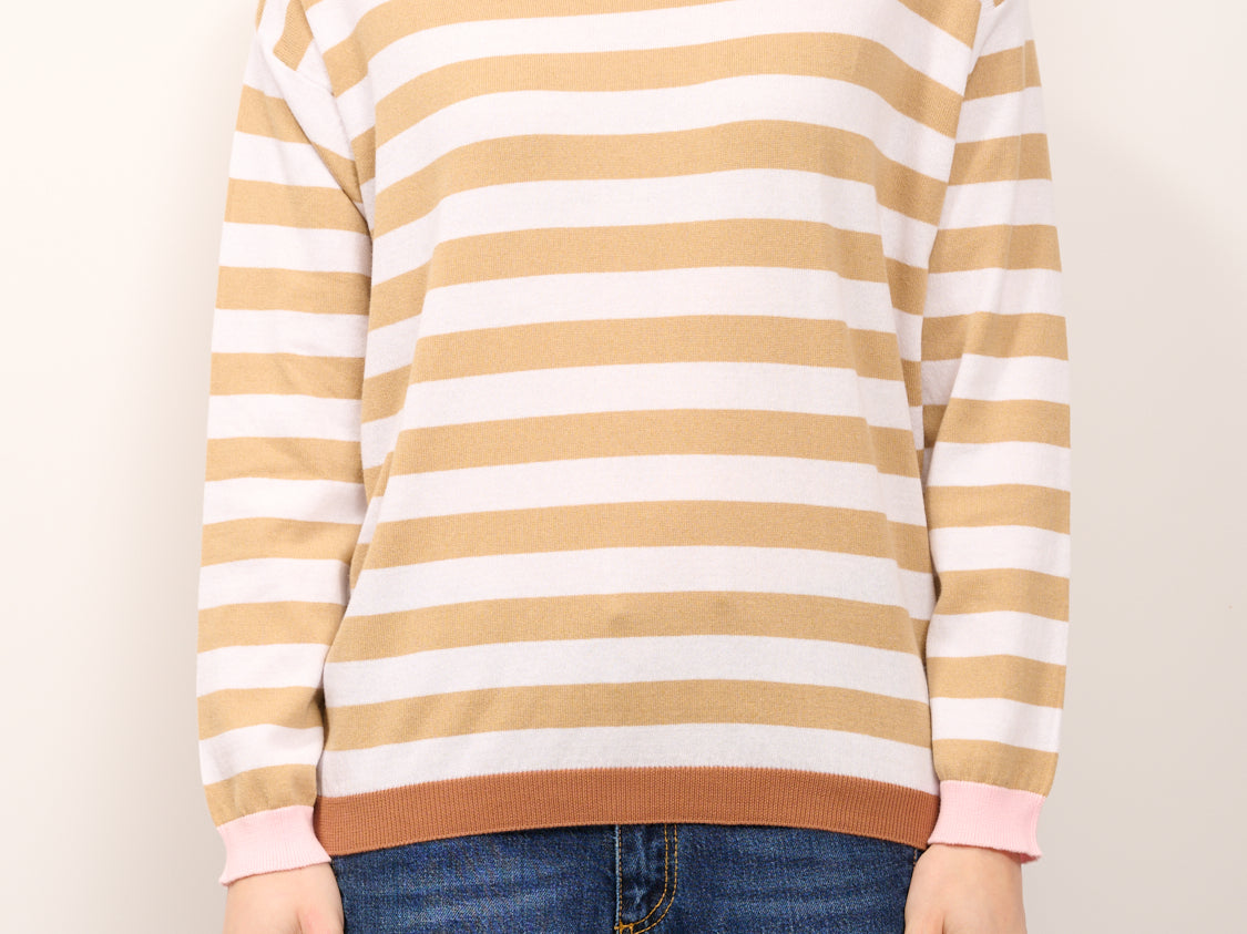 IDENTITY - MAGLIA RIGA LARGA - BIANCO/CAMEL/ROSA