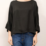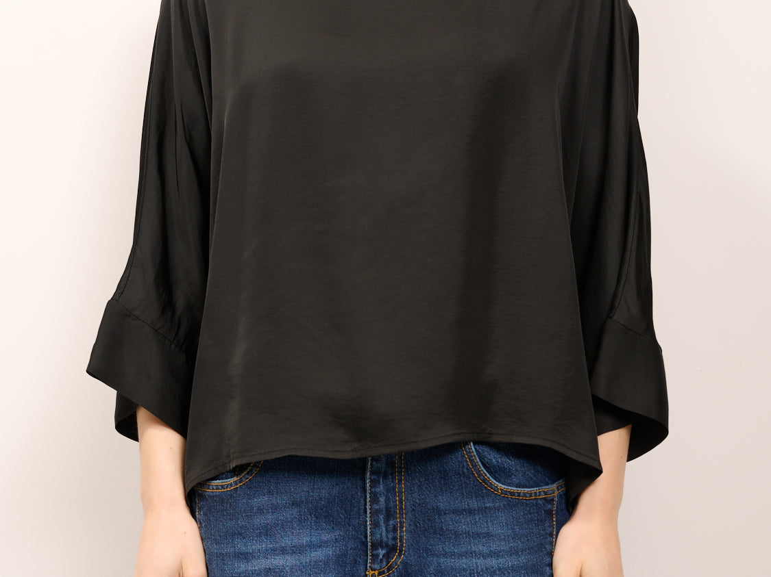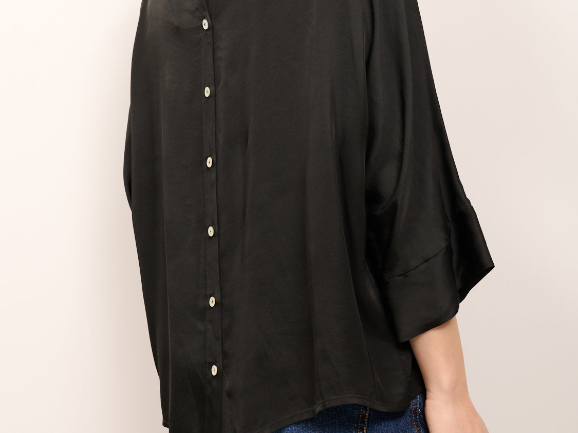 TENSIONE IN - CAMICIA SATINE BOTTONI DIETRO - NERO