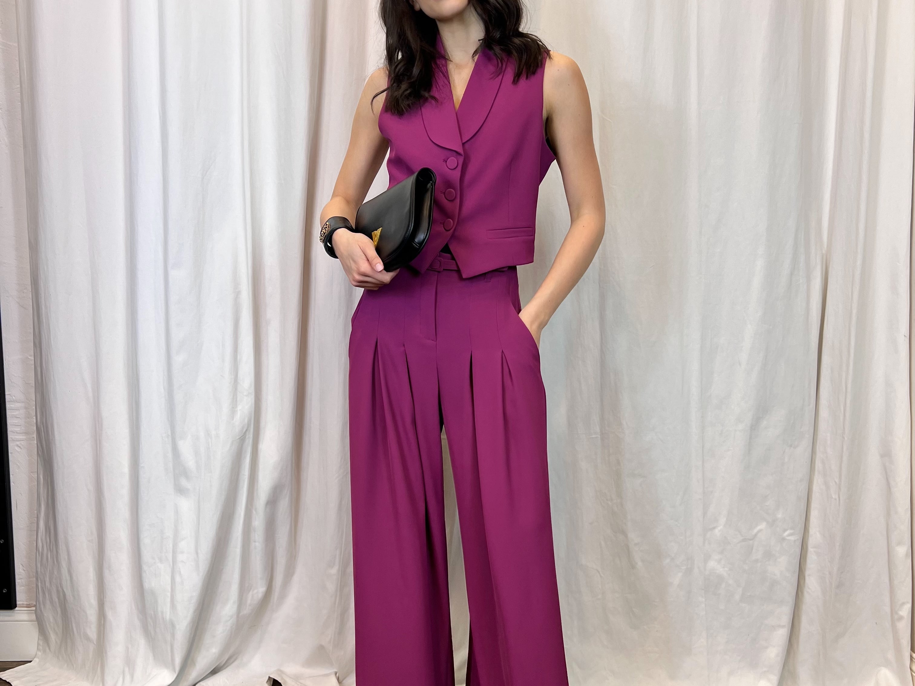 A must-have for those seeking a look that does not go unnoticed. The vest offers an impeccable fit and a touch of modernity to your look. The high-waisted trousers with pleats guarantee comfort and style, following the latest spring-summer 2025 fashion trends. Ideal for special evenings or to stand out in the office, this suit is the perfect choice for those seeking a balance between style and functionality. Shop now on Blackout Roma and transform yourself into the style icon you've always dreamed of!