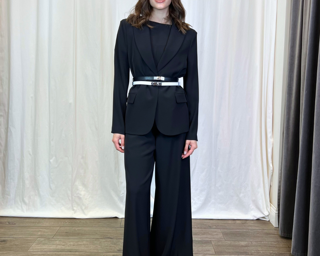 Sophisticated, decisive, timeless: the total black outfit by Imperial is the must-have of 2025. The long black vest pairs perfectly with palazzo pants trimmed in satin, creating an elegant and contemporary play of volumes. Black pumps complete the look, for a slender and ultra chic silhouette. Ideal for evening events and special occasions, this total black perfectly interprets the new minimalism of the season. Discover now on Blackoutroma and conquer every eye.