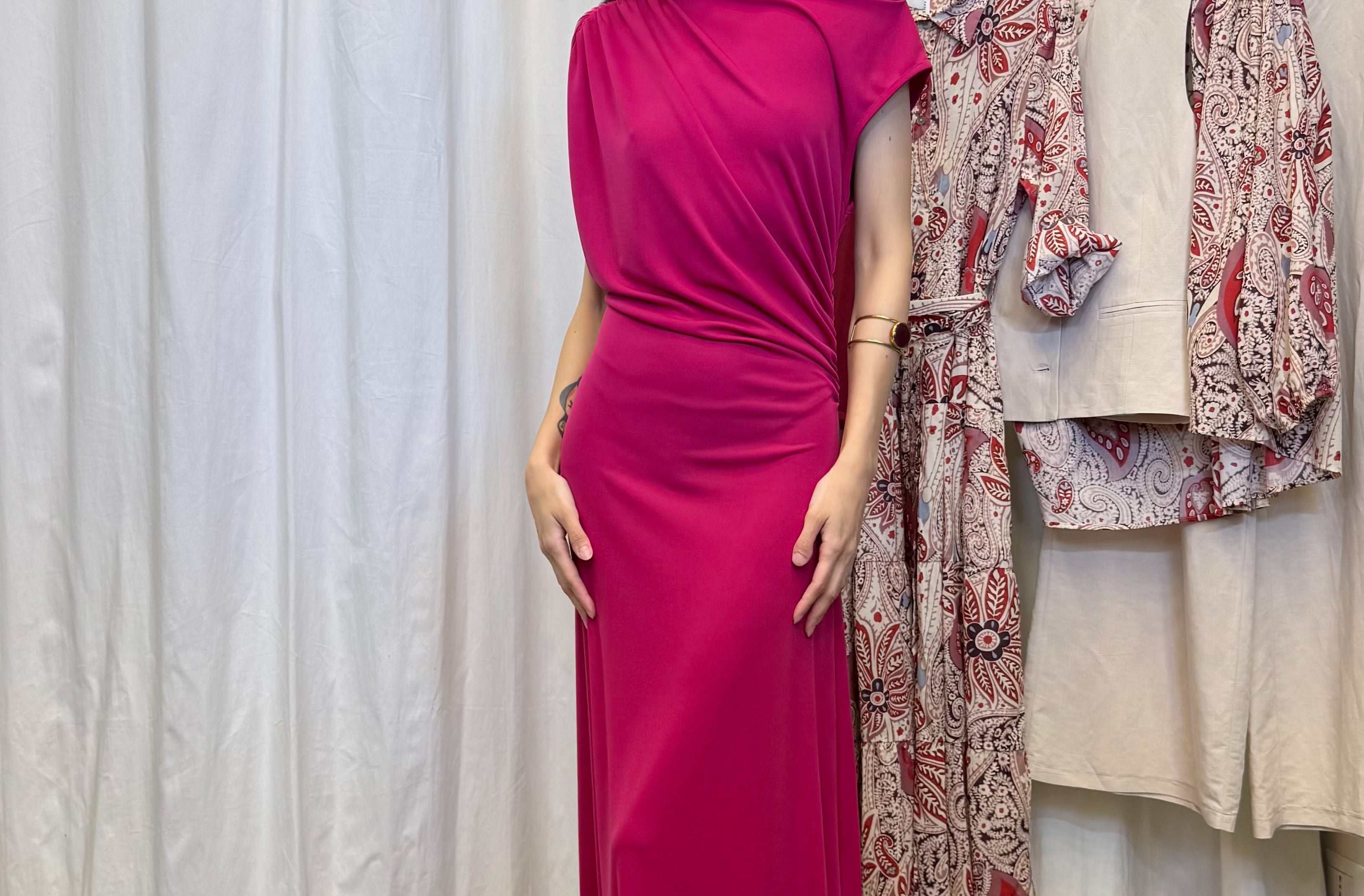 Seductive, contemporary, unstoppable: the long asymmetric fuchsia dress by Vicolo is the perfect choice to dominate the scene with personality. The sculptural cut and the vibrant color blend into a statement look, ideal for evening events and summer ceremonies. To complete the outfit, the platinum slingbacks add light and sophistication, balancing sensuality and class. Discover this exclusive look on Blackoutroma and let yourself be guided by the 2025 women's fashion trends. Your next must-haves await you.