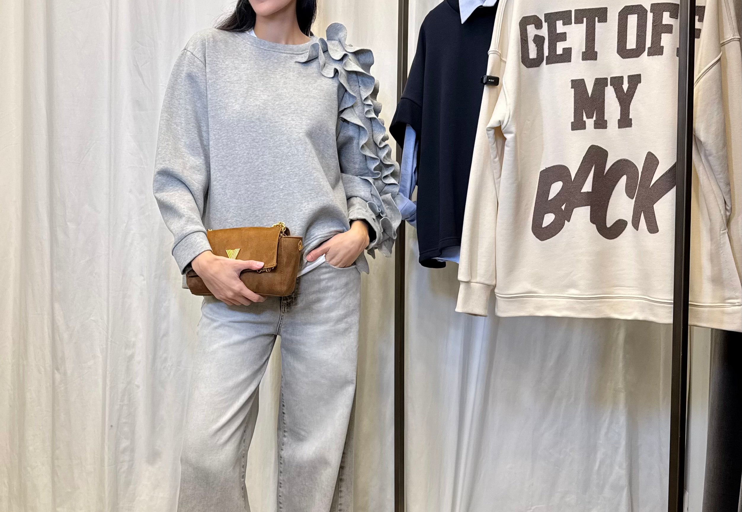 Comfort and style meet in this perfect look for the season. The Alex jeans give a contemporary touch, while the ruffled sweatshirt adds femininity and movement. The trendy hat completes the ensemble with a streetwear accent, while the practical and elegant Small Duo Bag suede gives the finishing touch. Shop now at Blackoutroma and take your casual style to the next level!