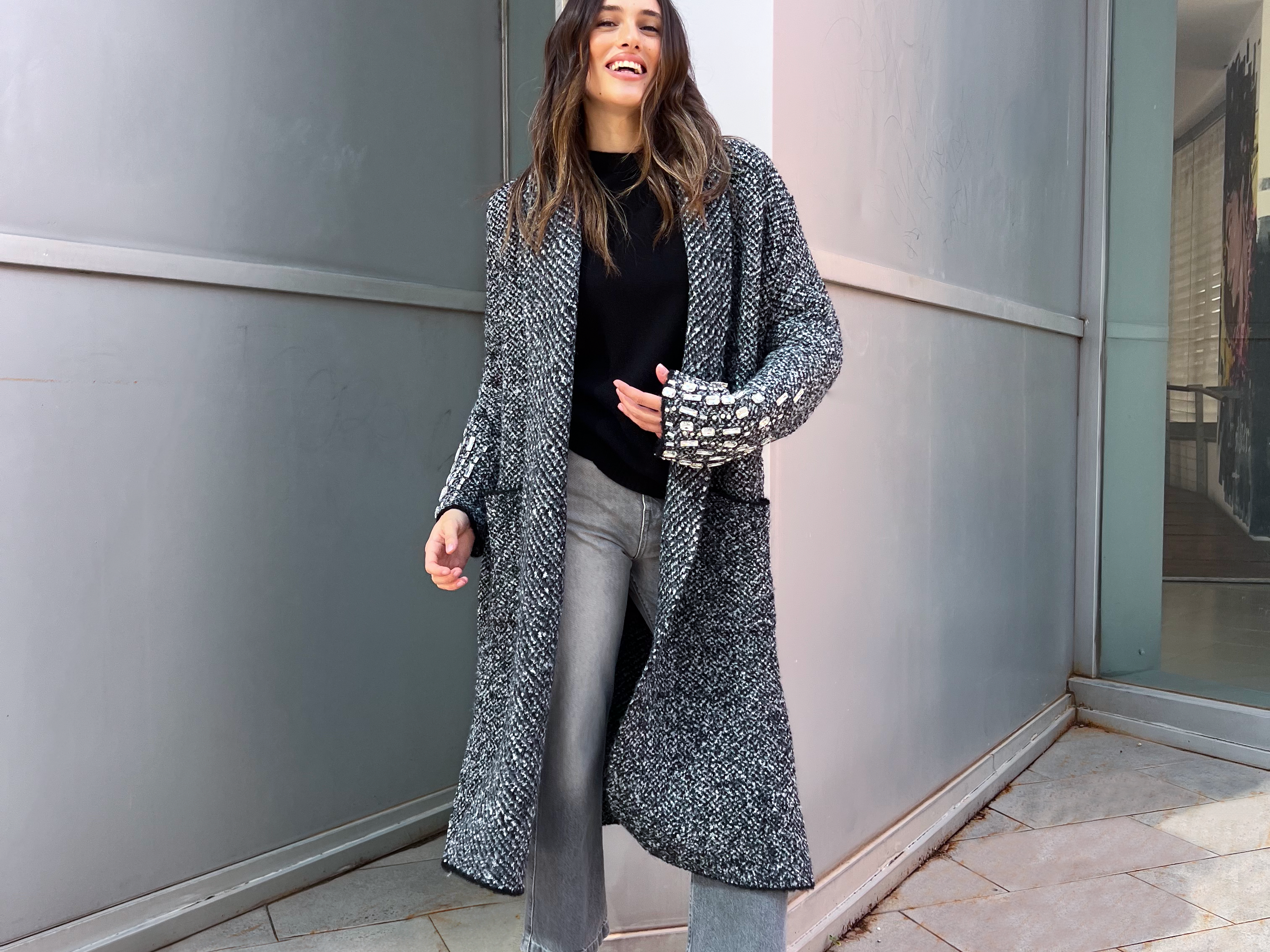 VICOLO - BOUCLE' KNIT COAT WITH STONE SLEEVES - BLACK