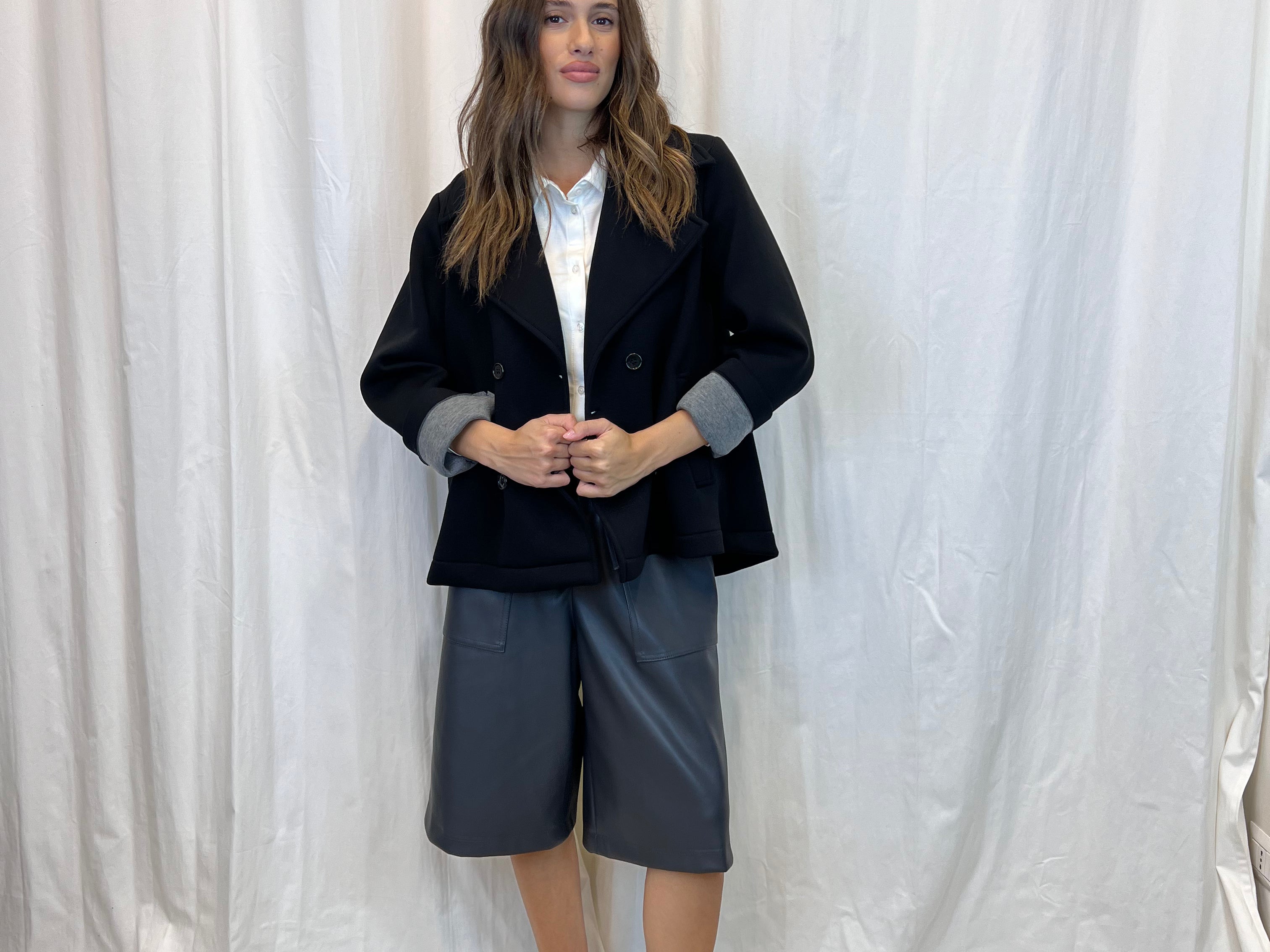 Urban elegance for your moments of relaxation. The trendy casual aperitif outfit combines comfort and style, with a structured jacket and trendy Bermuda shorts, perfect for standing out with ease.