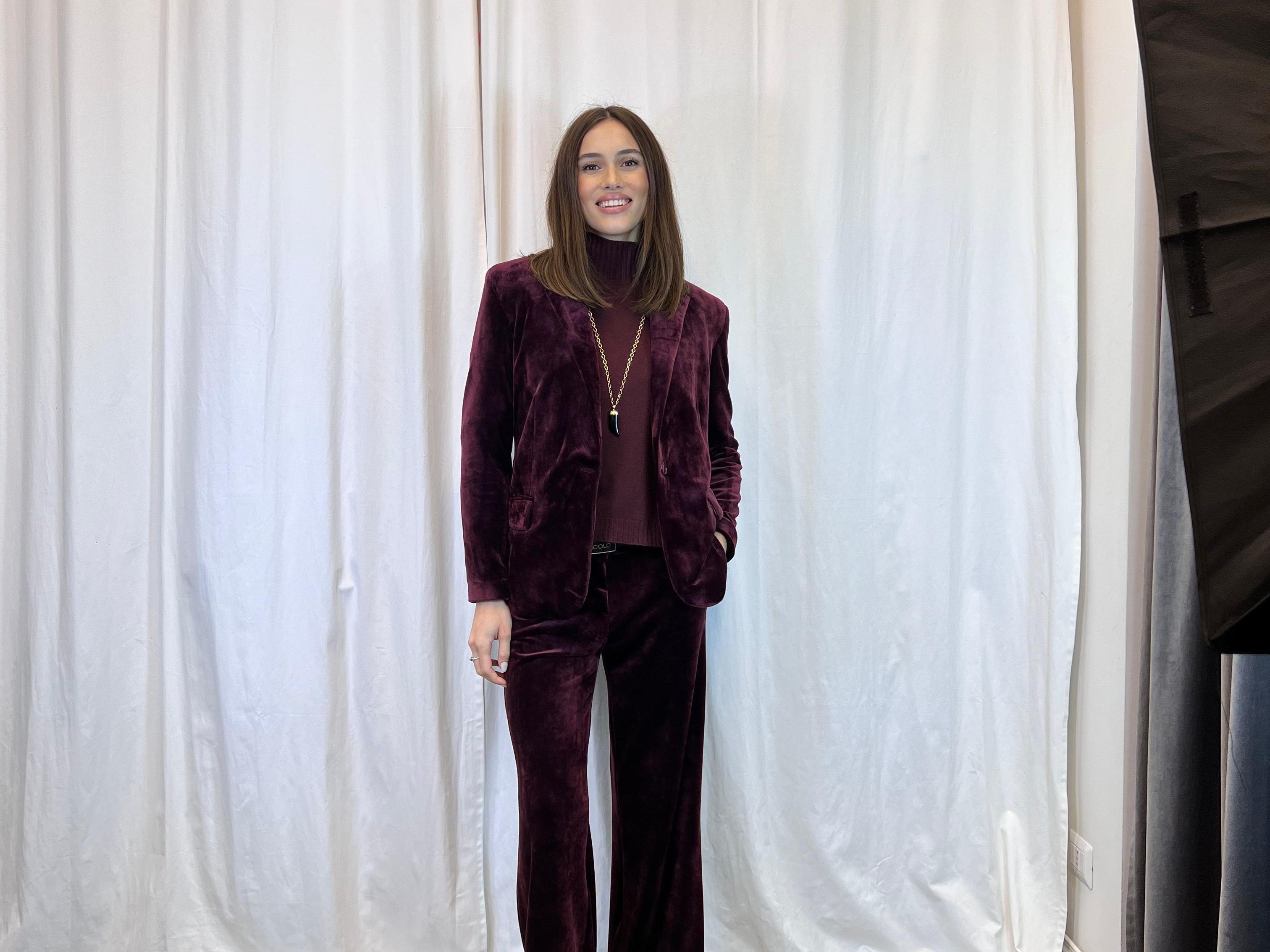 Opt for a sophisticated look with this burgundy velvet suit, perfect for a trendy outfit that combines comfort and class. The structured blazer and wide-leg trousers define a versatile style, ideal for a special event. Discover timeless elegance on Blackoutroma and make your wardrobe unforgettable!