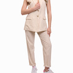 MOTEL - PANTALONE GESSATO CON ELASTICO - BEIGE