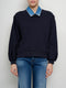 TENSIONE IN - FELPA COLLO JEANS CON STRASS - BLU