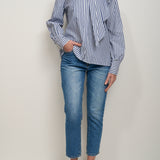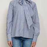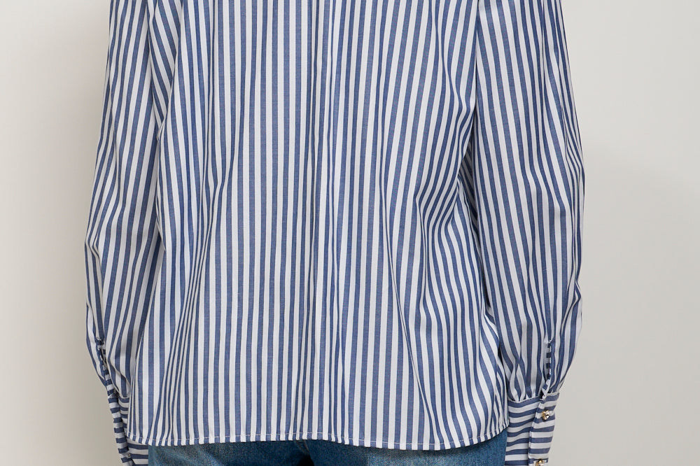 TENSIONE IN - CAMICIA RIGATA FIOCCA - BLU