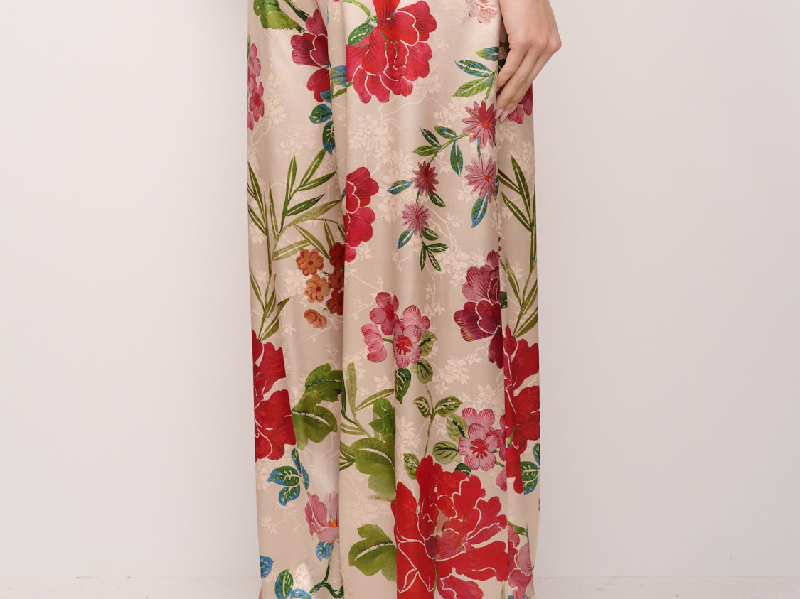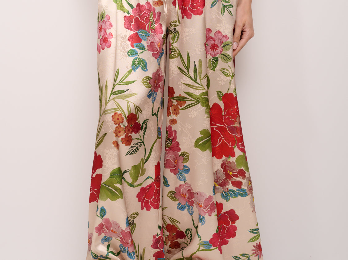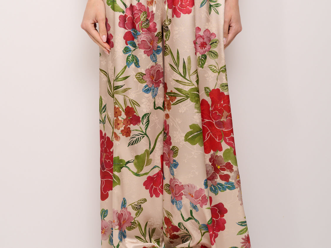 TENSIONE IN - PANTALONE LARGO FIORE - FIORE ROSSO