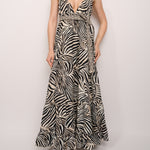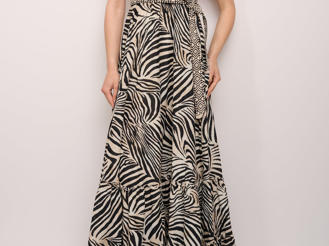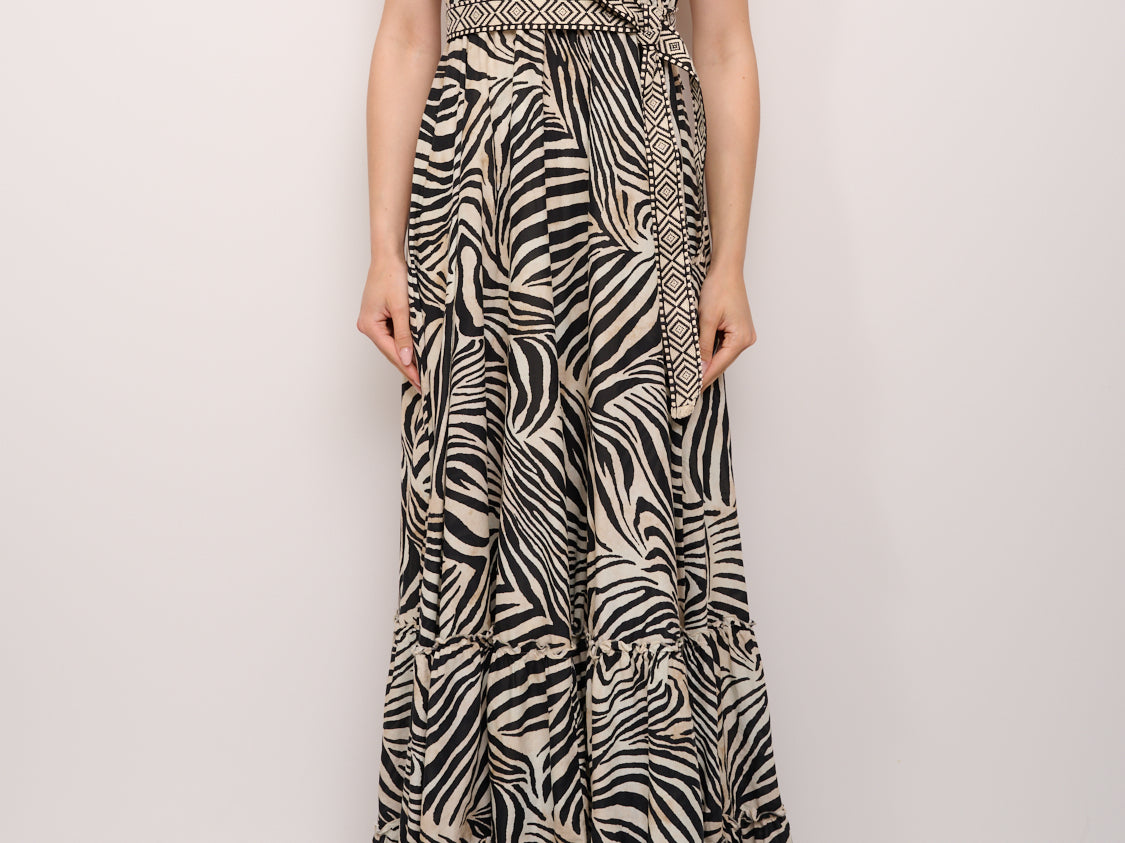 TENSIONE IN - ABITO LUNGO ZEBRATO - SABBIA/NERO