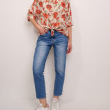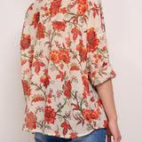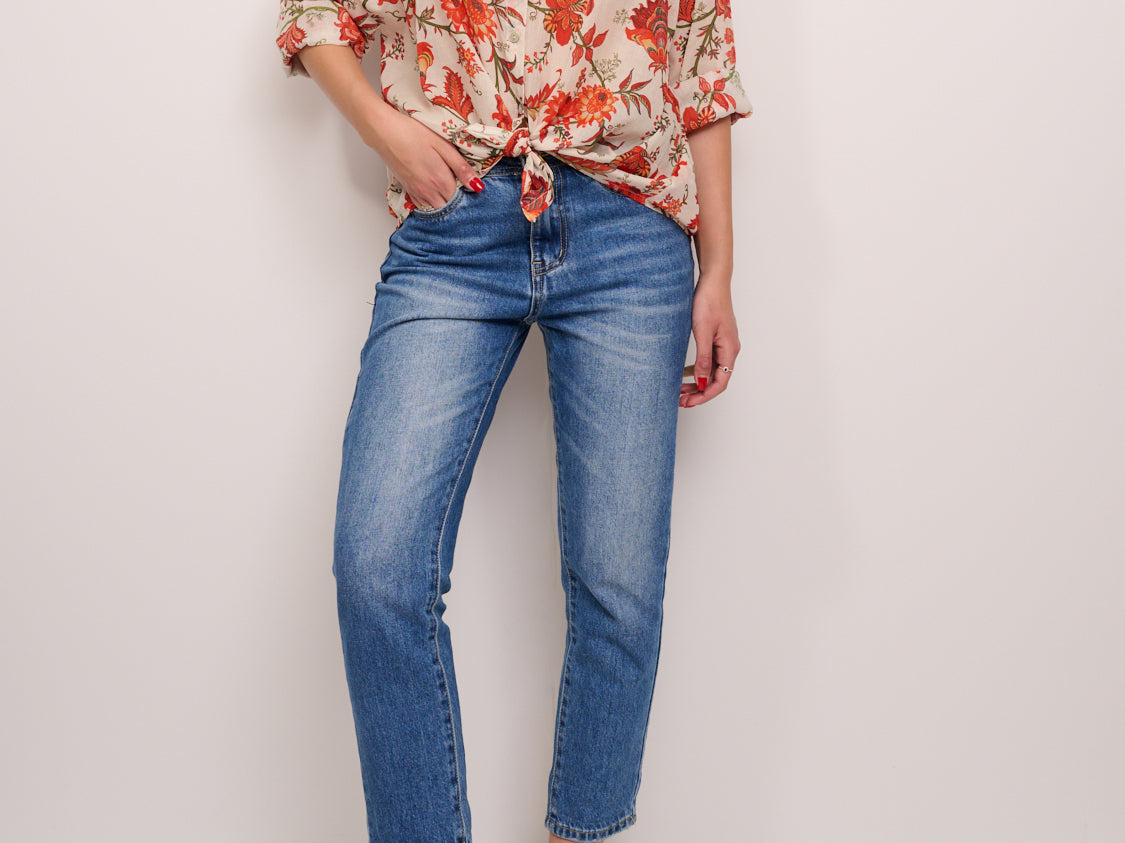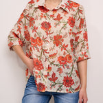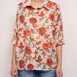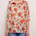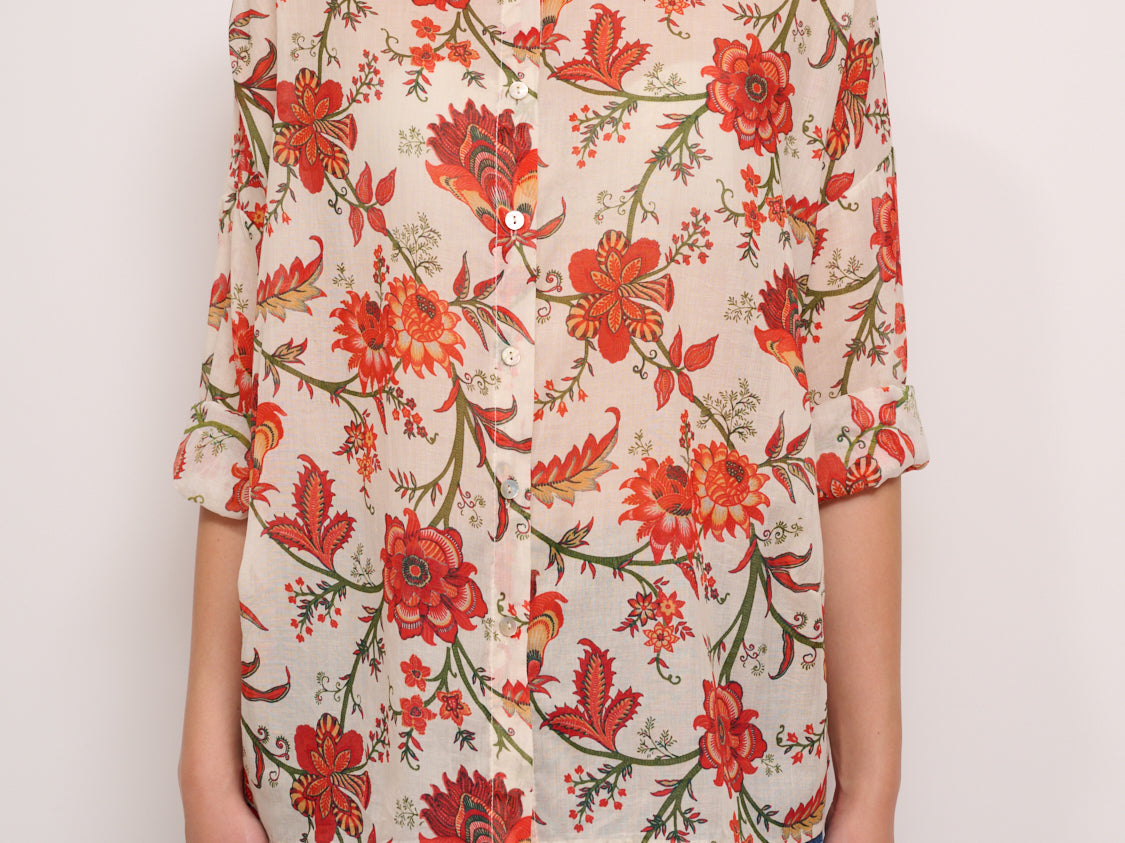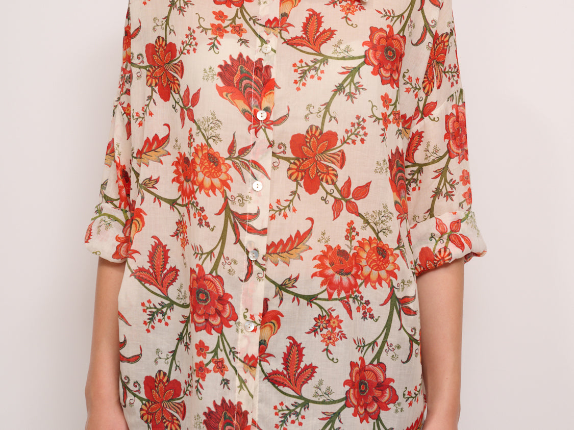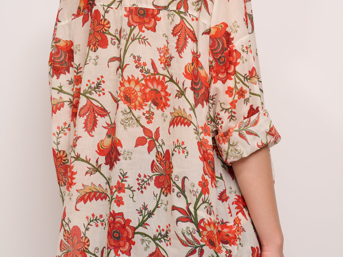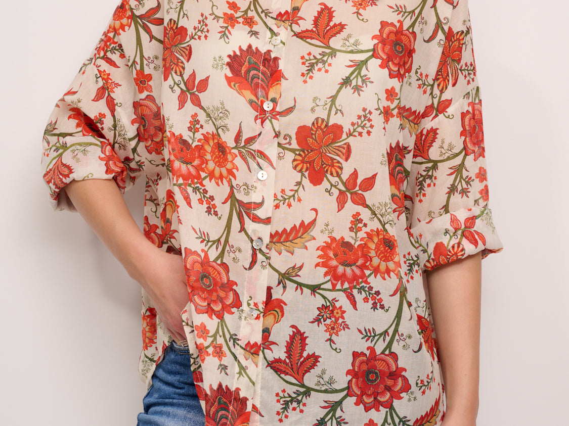 IDENTITY - CAMICIA MUSSOLA DI COTONE - FIORE CORALLO/VERDE