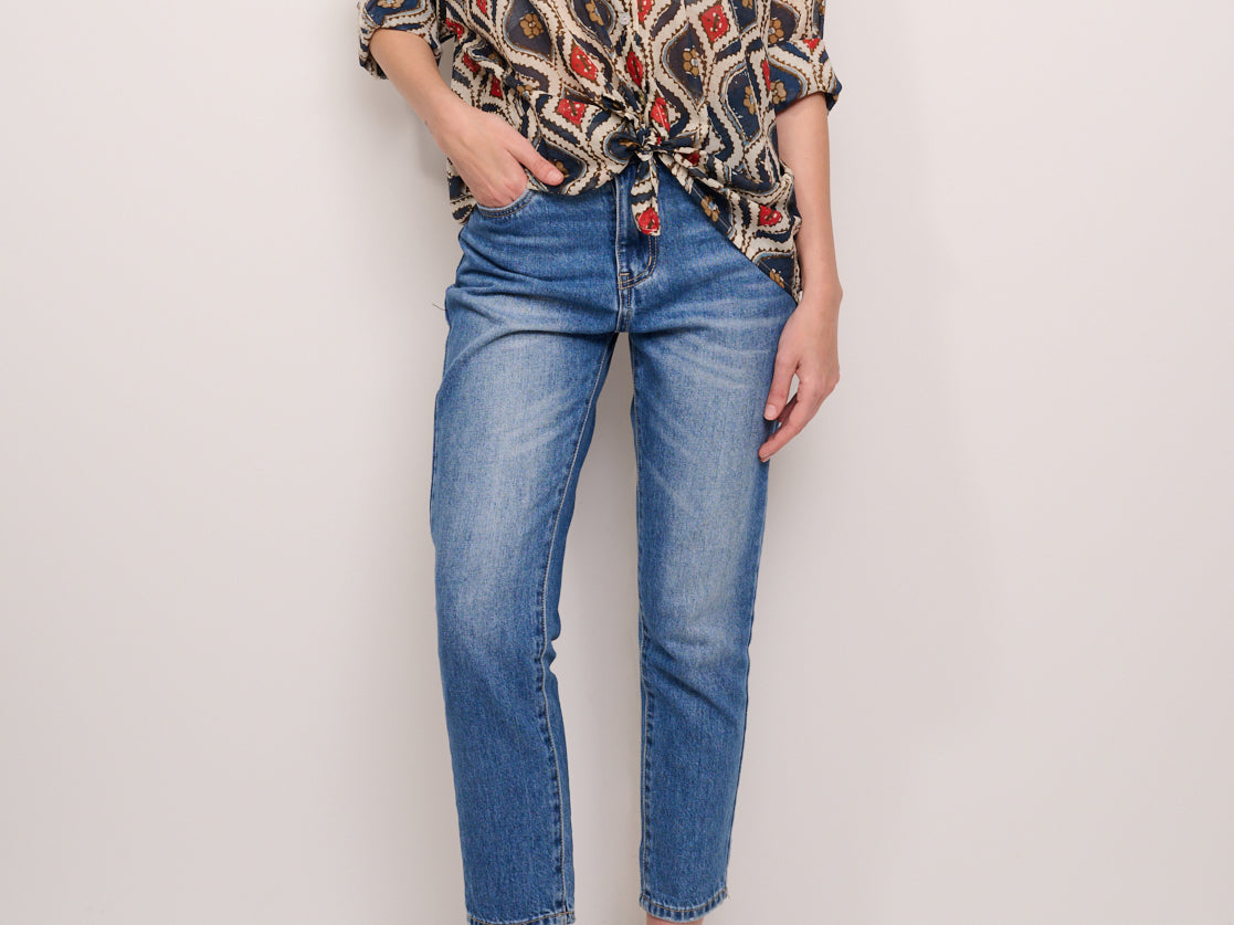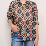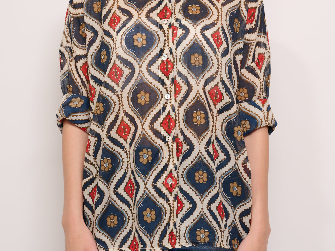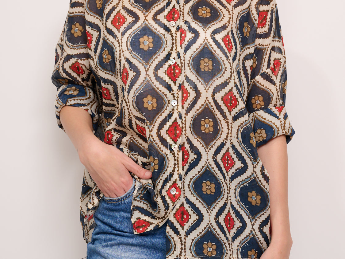 IDENTITY - CAMICIA MUSSOLA DI COTONE - STAMPA BLU