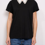 TENSIONE IN - T-SHIRT COLLO RICAMATO - NERO/BIANCO