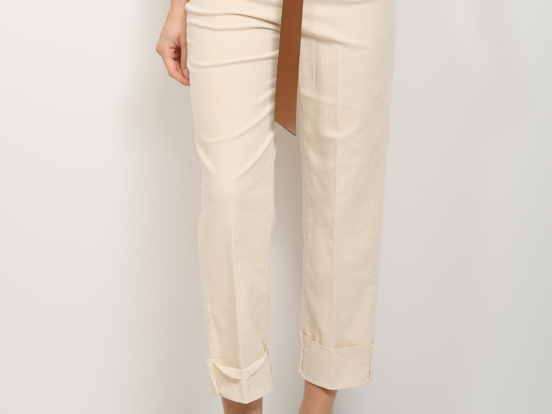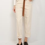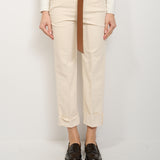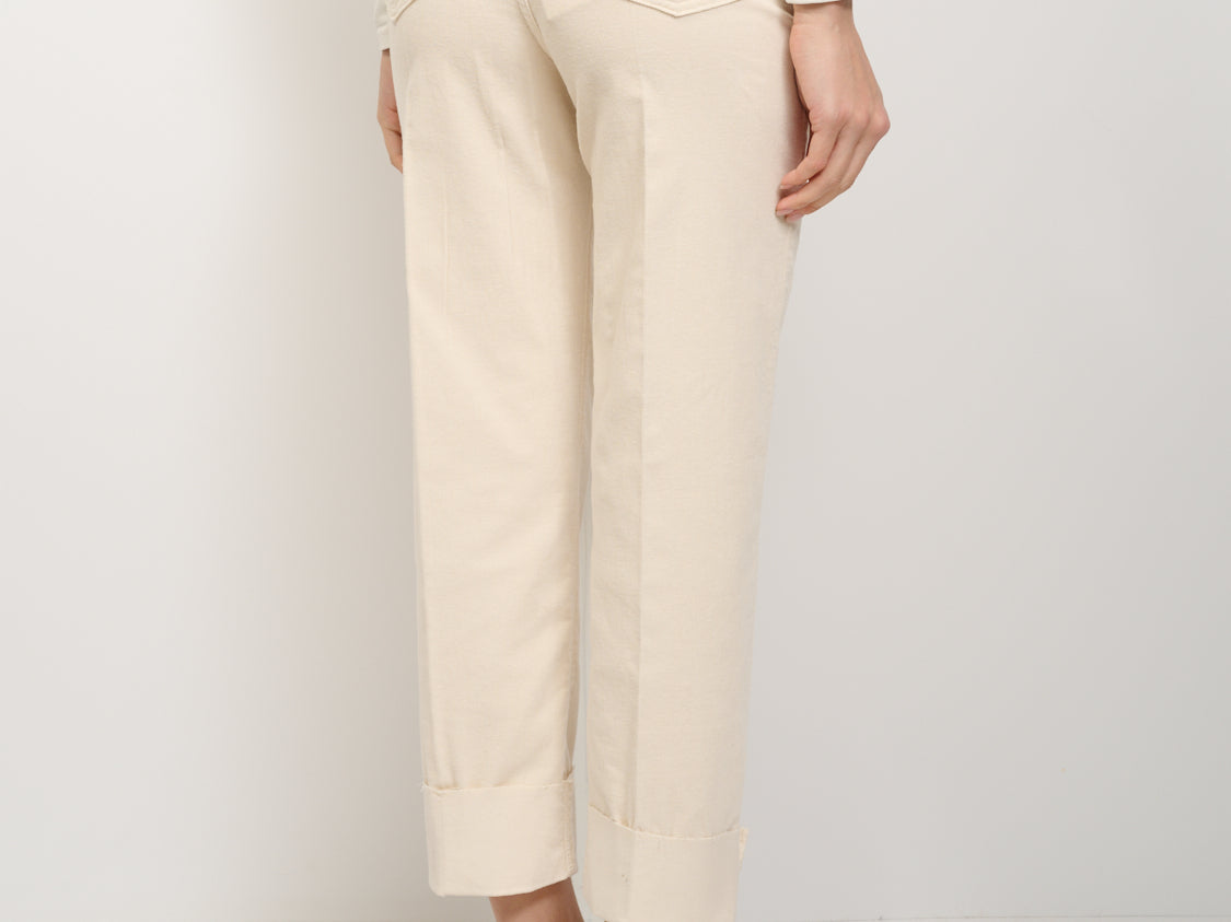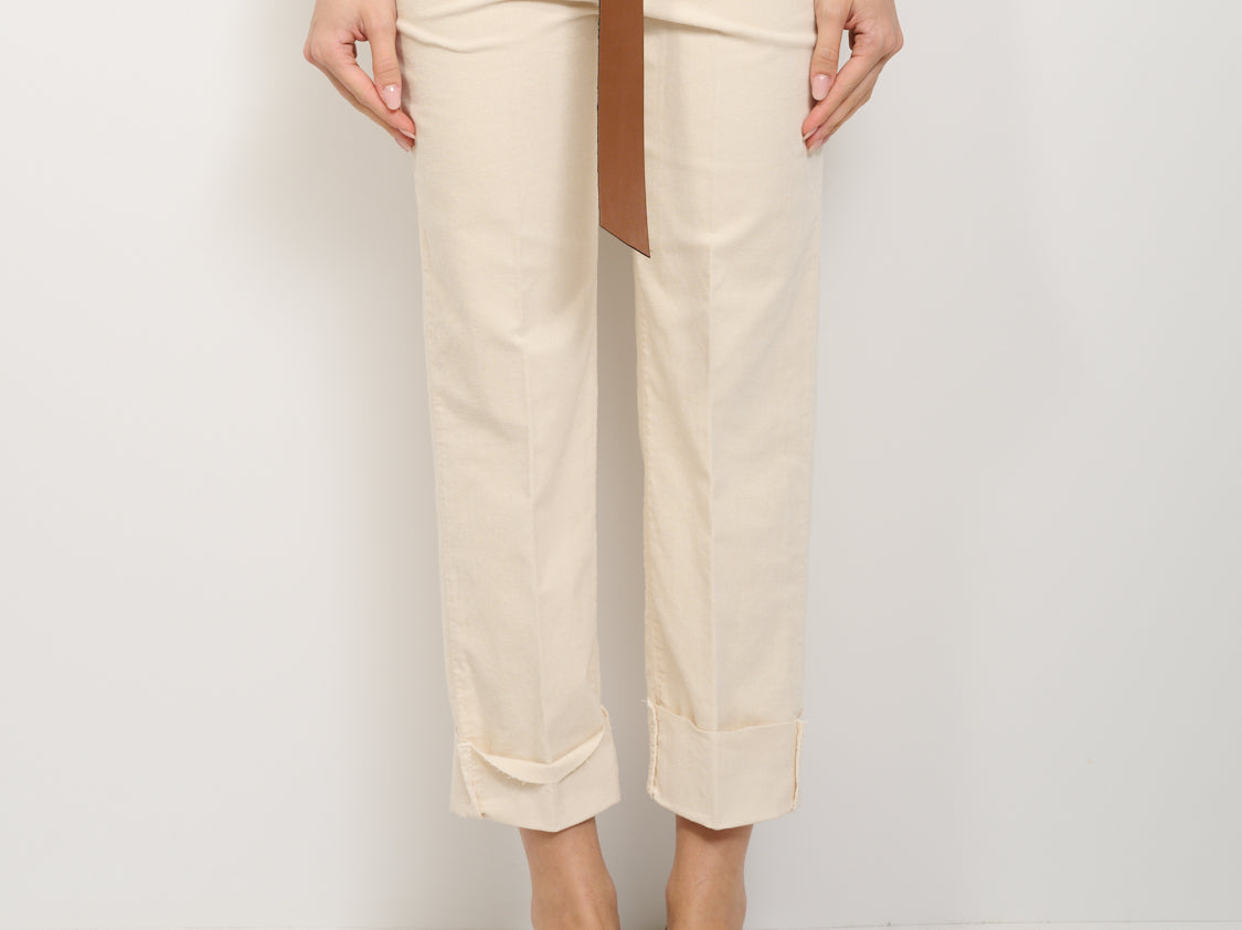 HAVE HONE - PANTALONE VELLUTO RISVOLTO - BURRO