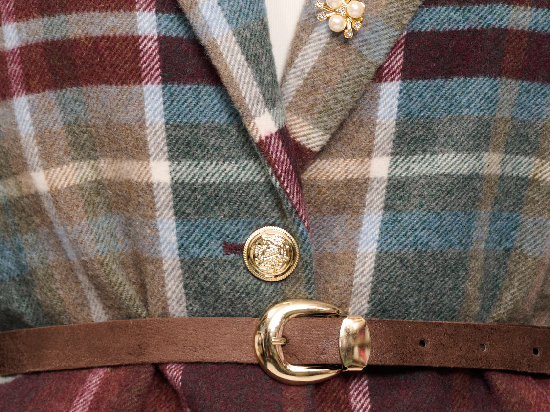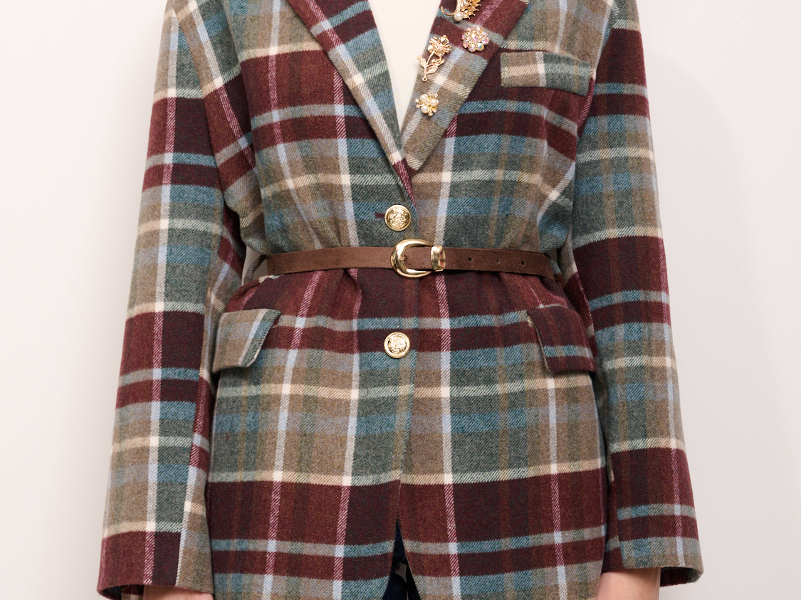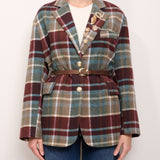 TENSIONE IN - GIACCA CHECK CON CINTA - BORDEAUX