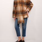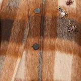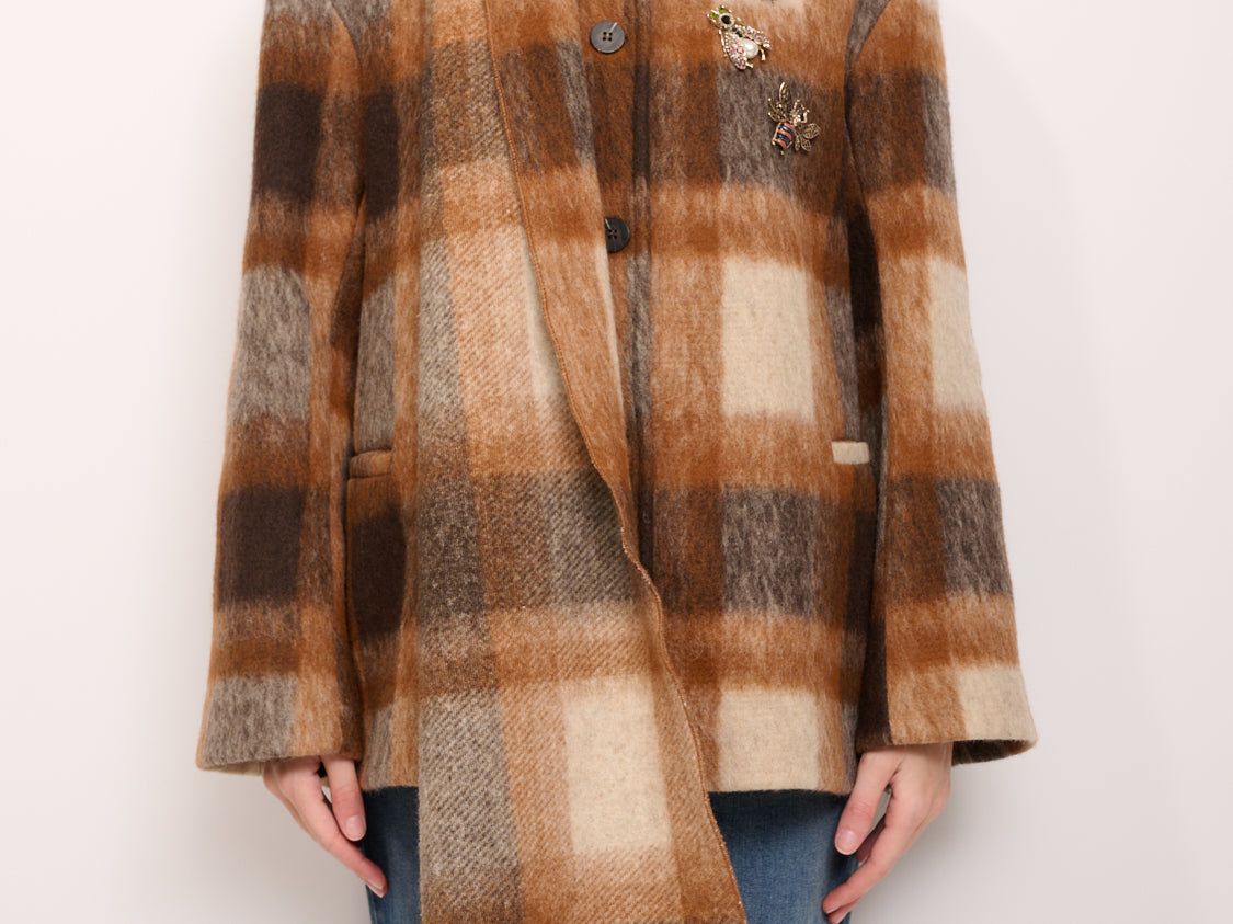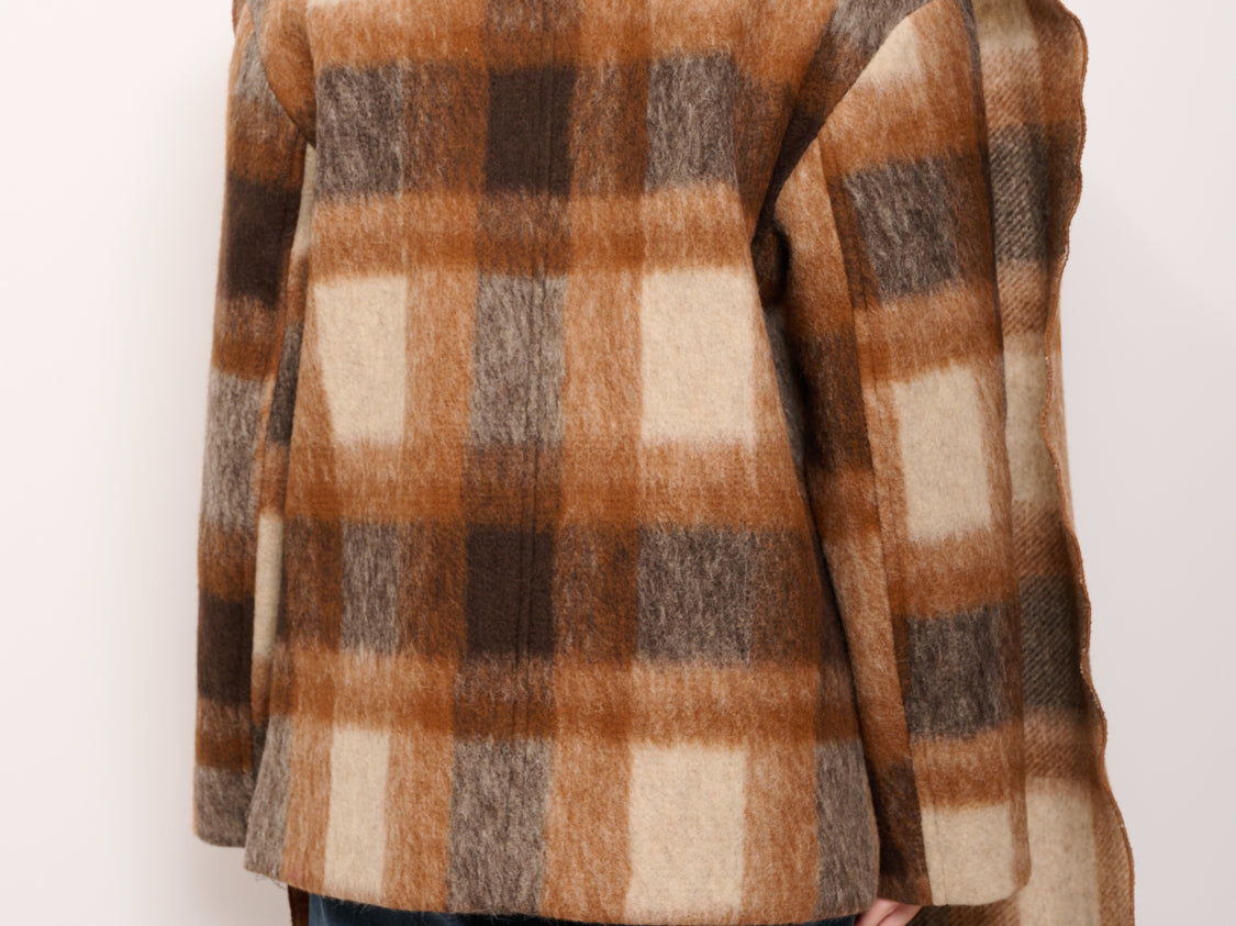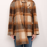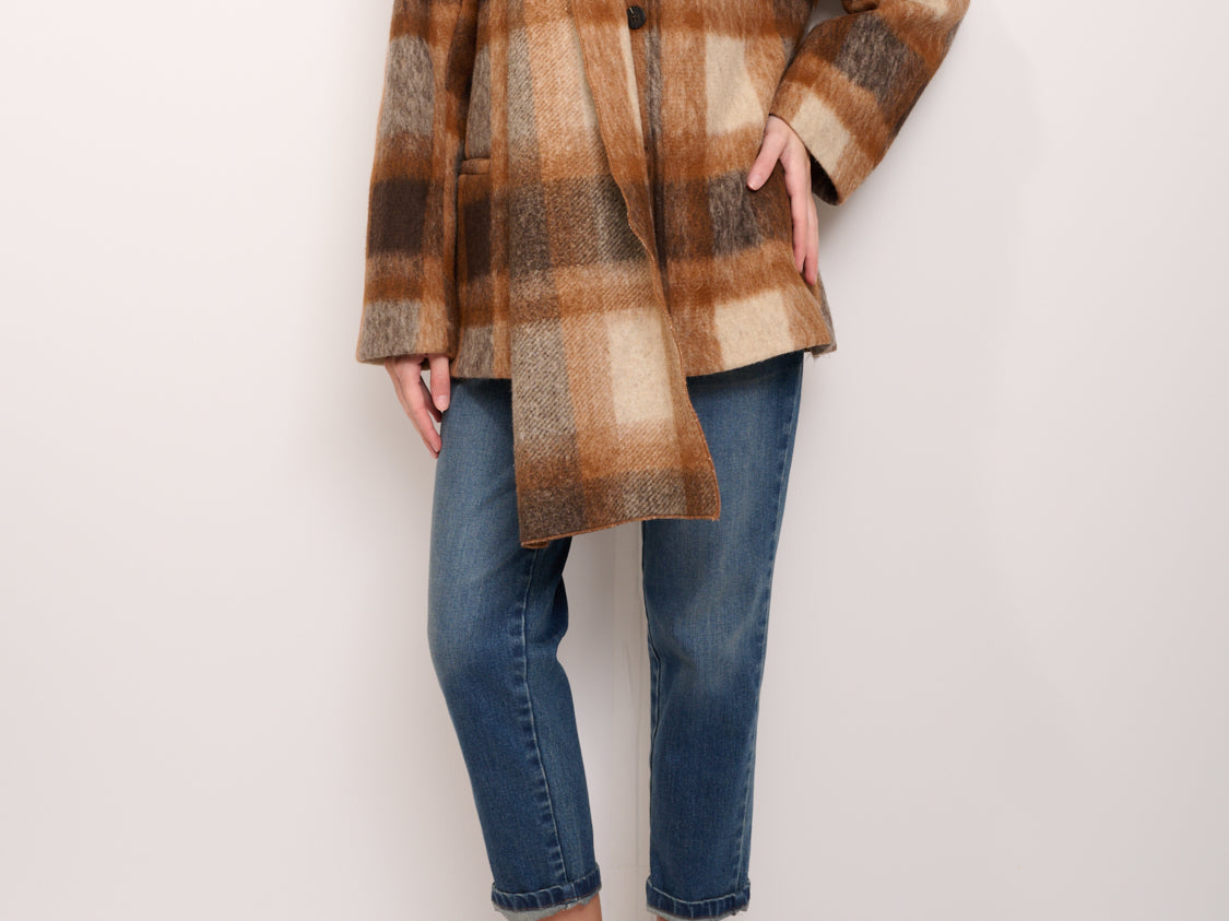 TENSIONE IN - CAPPOTTO QUADRI CON SCIARPA - TABACCO