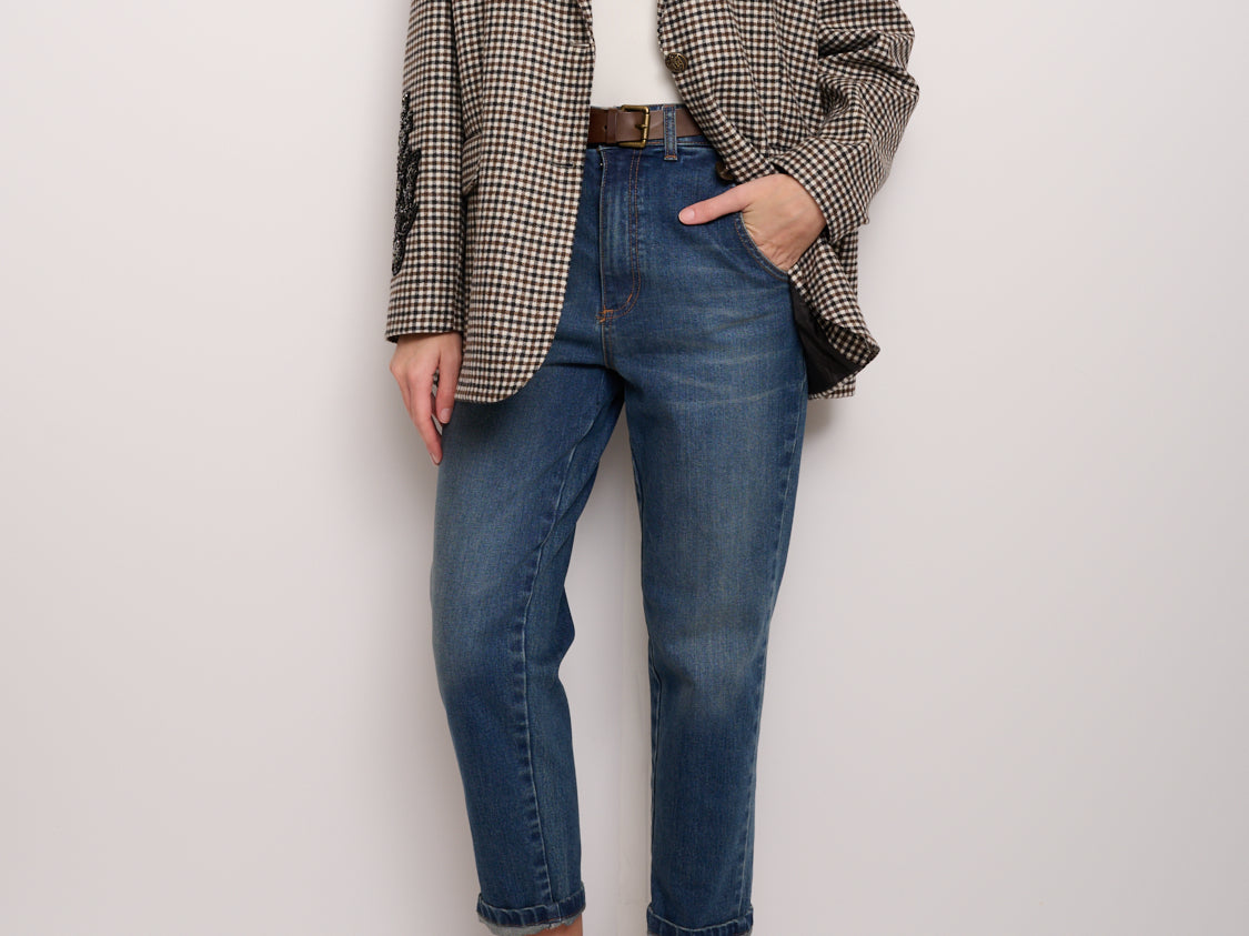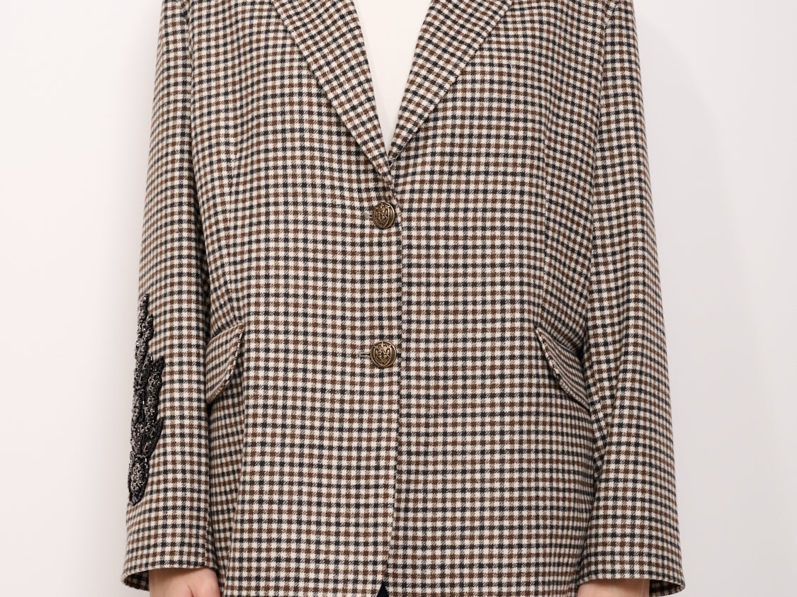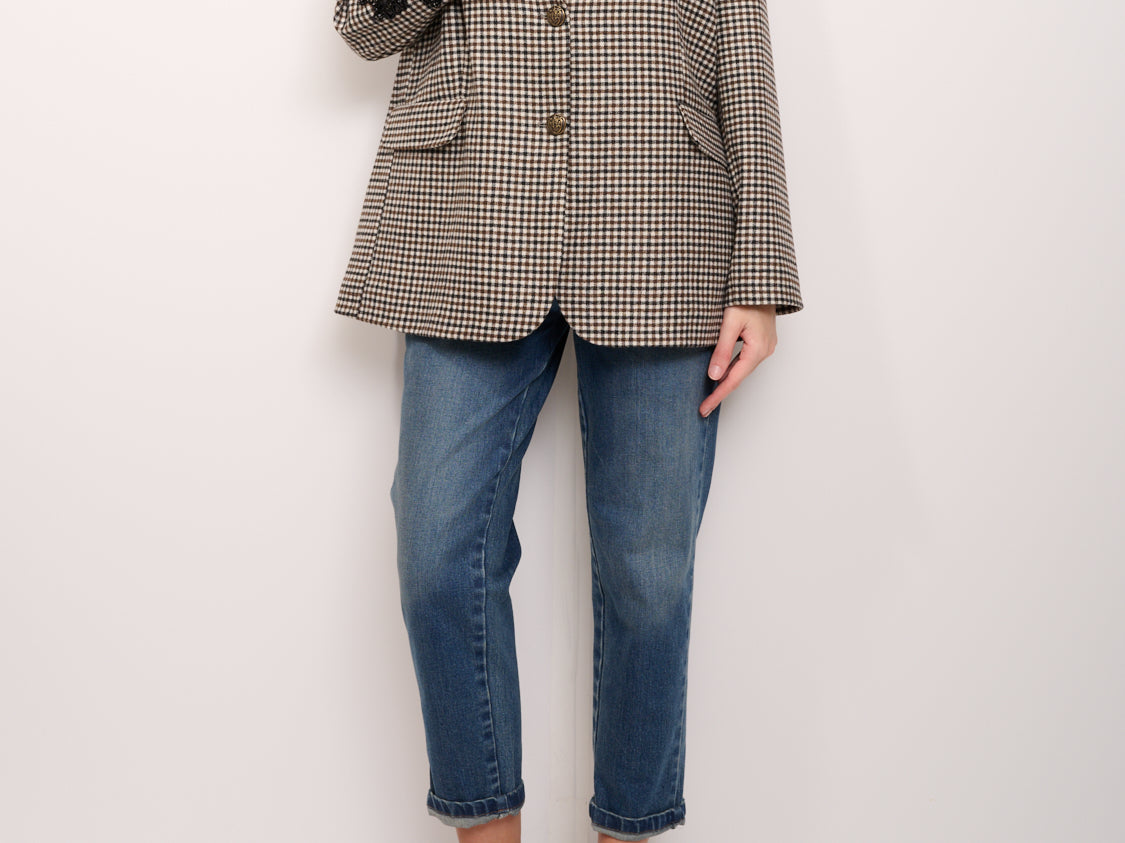 TENSIONE IN - GIACCA OVER PIED POULE RICAMO MANICA - NERO/CAFFE'