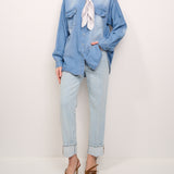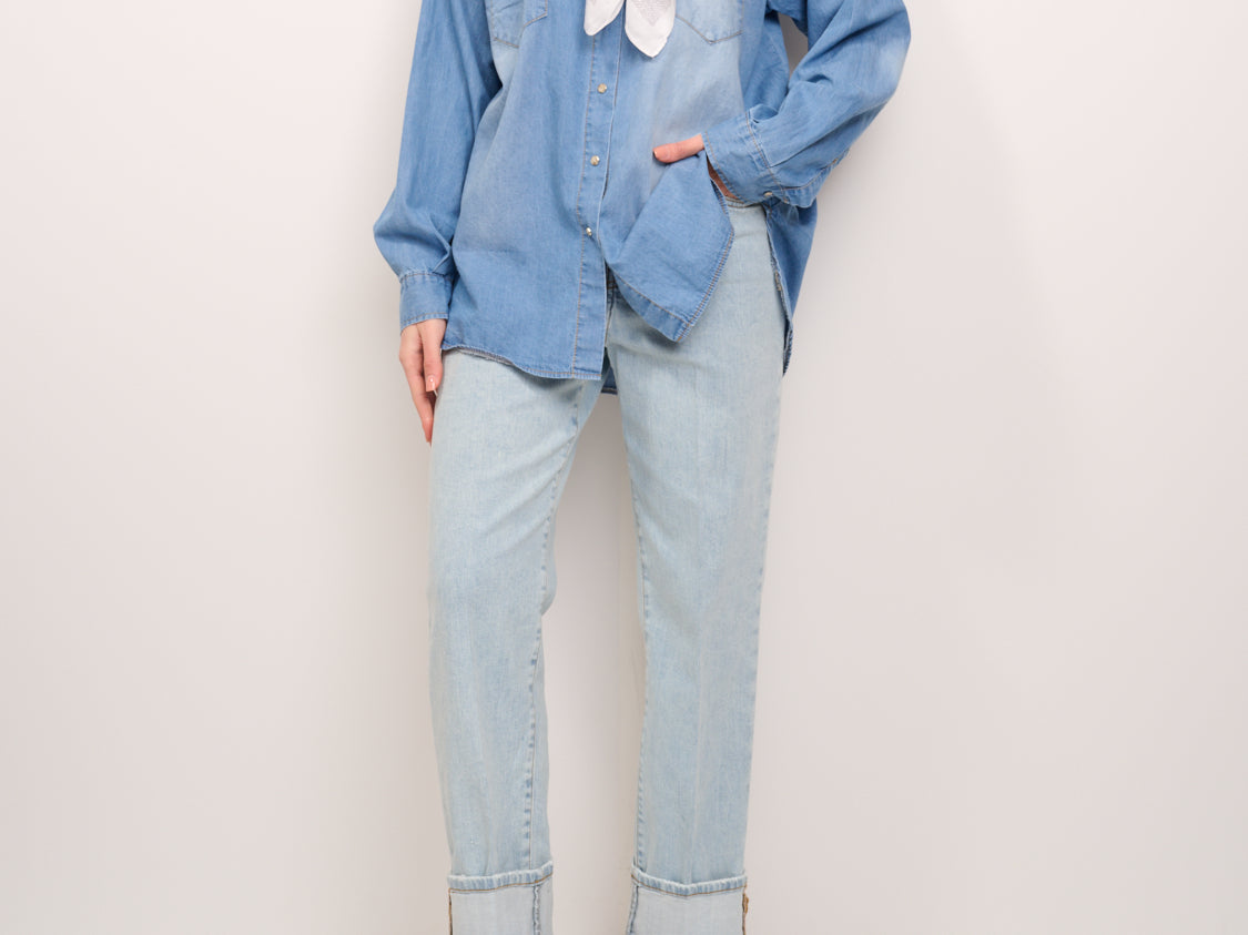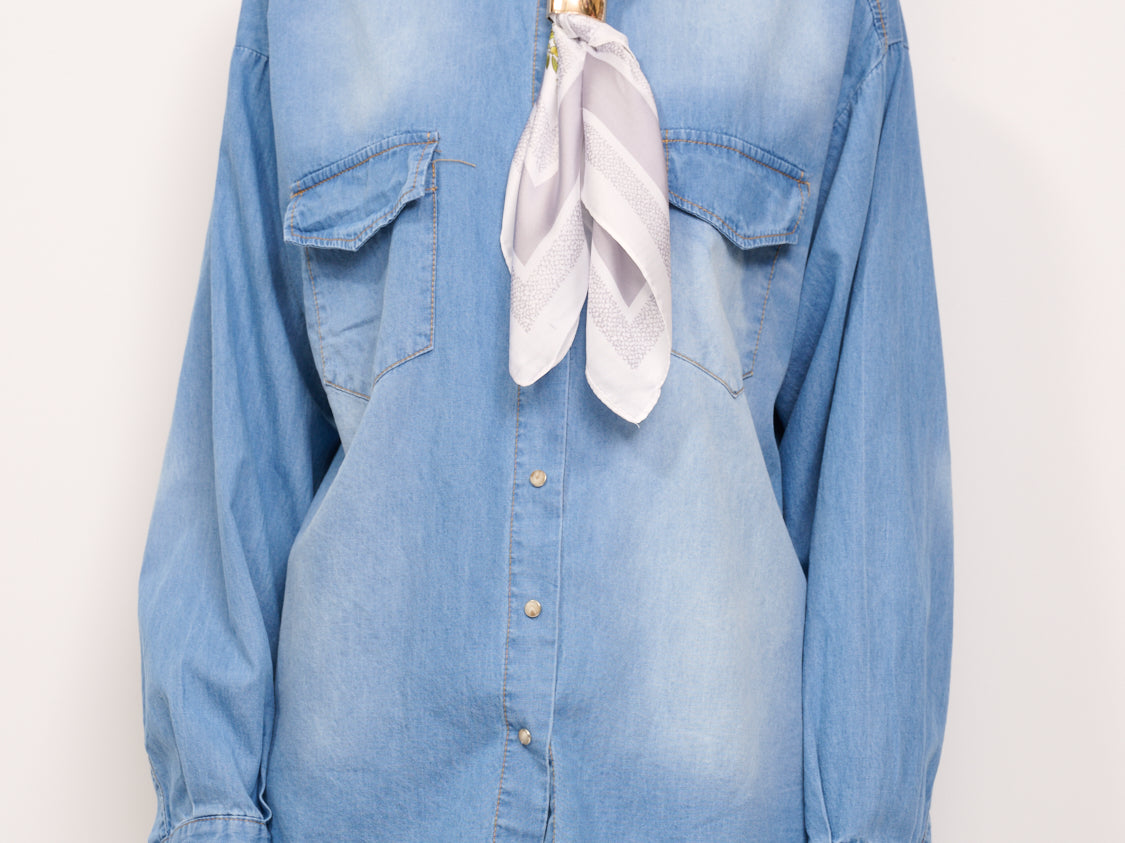TENSIONE IN - CAMICIA CHAMBRAY FOULARD - BLU/GRIGIO