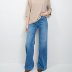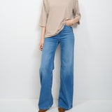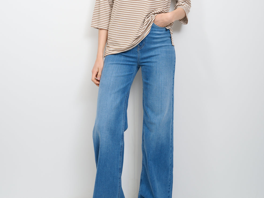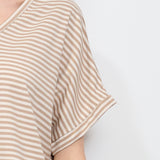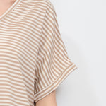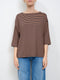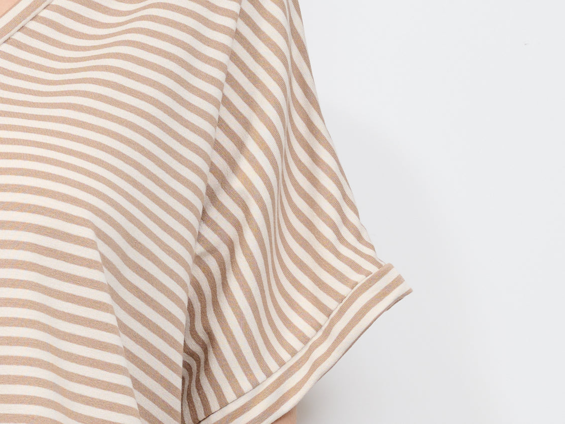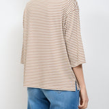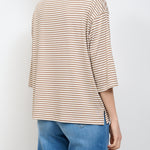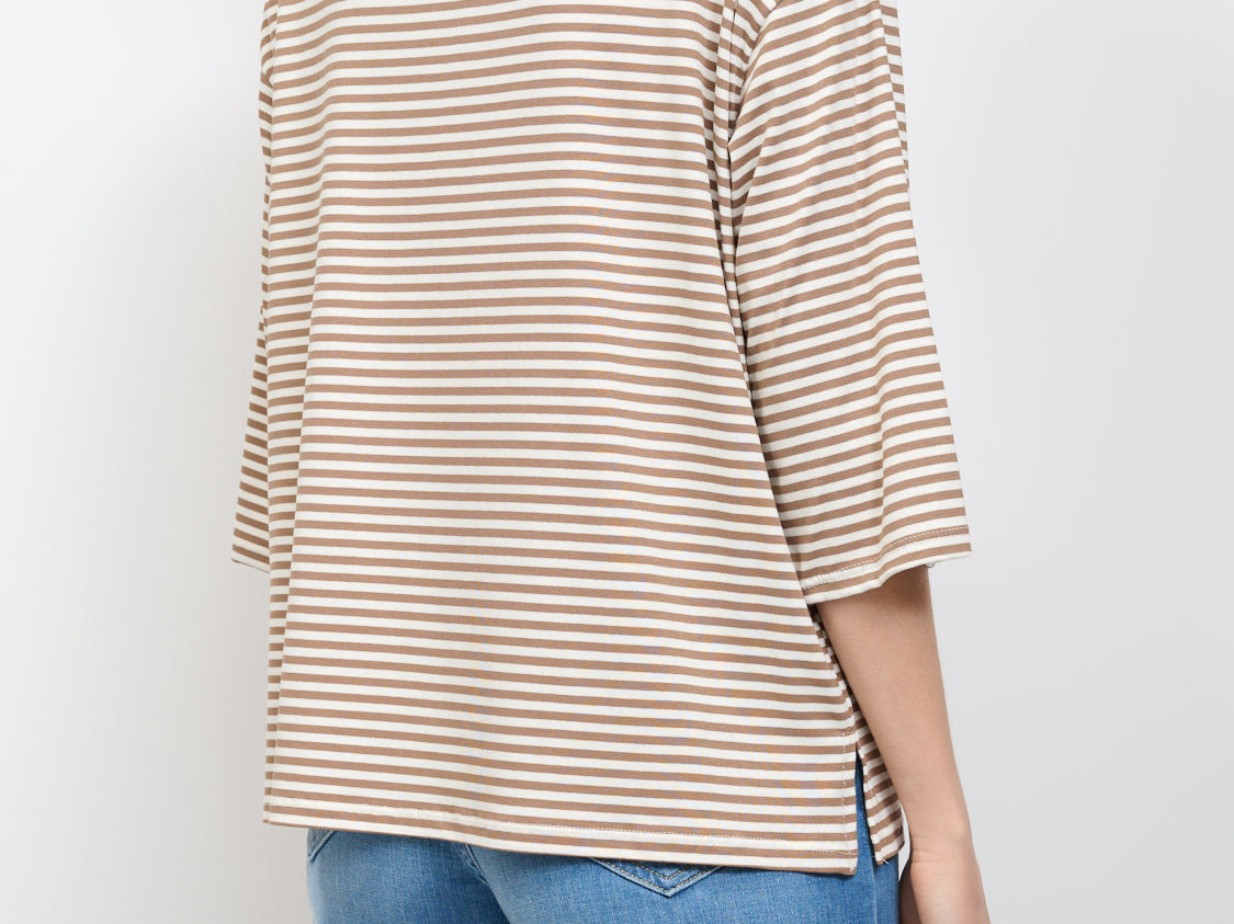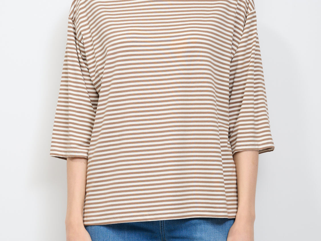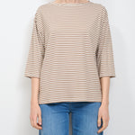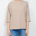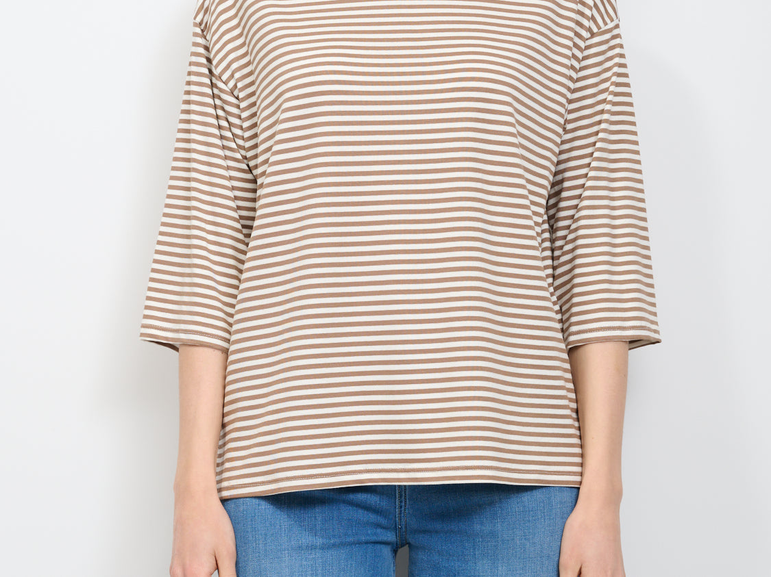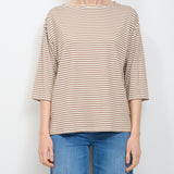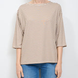 IDENTITY - T-SHIRT MANICA 3/4 RIGATA - BIANCO/CUOIO