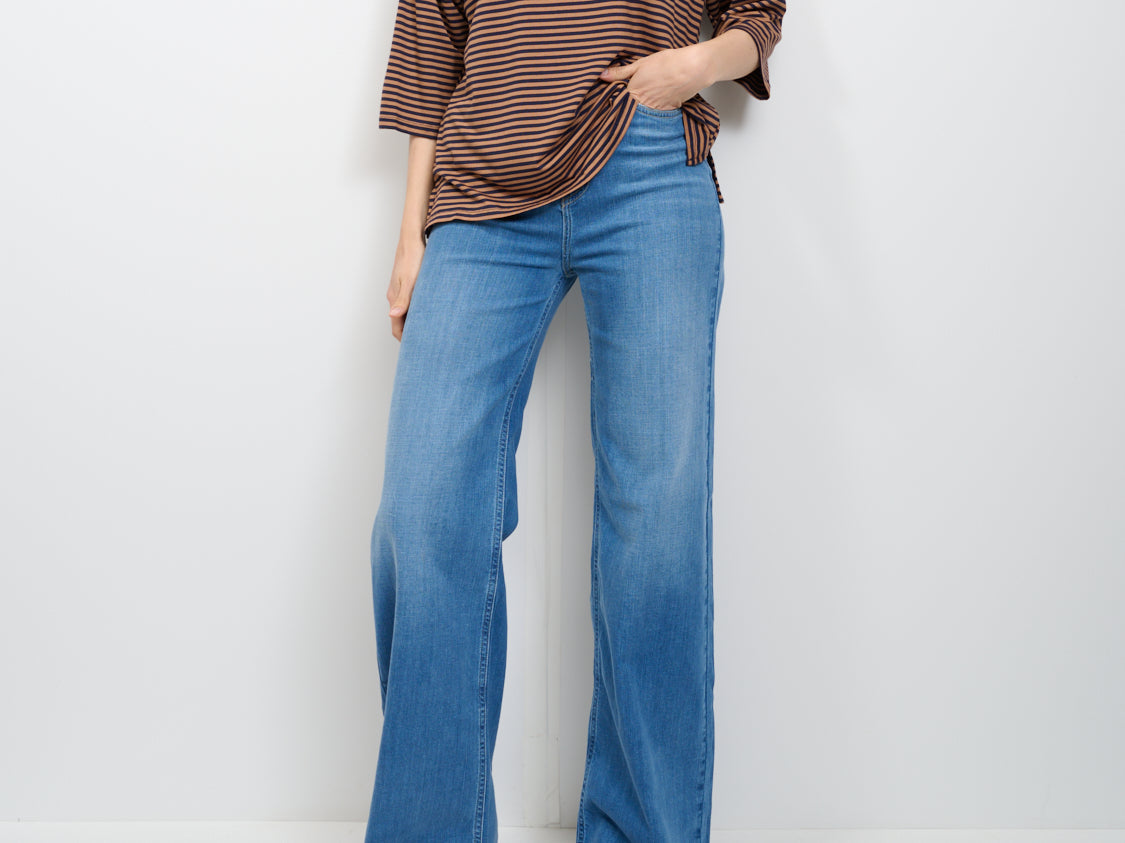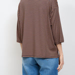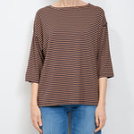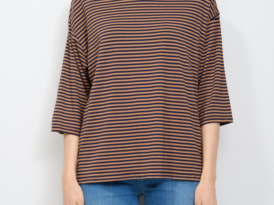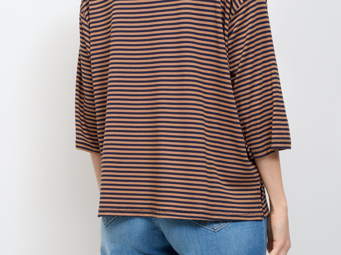 IDENTITY - T-SHIRT MANICA 3/4 RIGATA - CUOIO/BLU