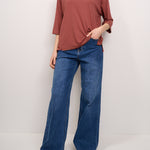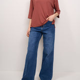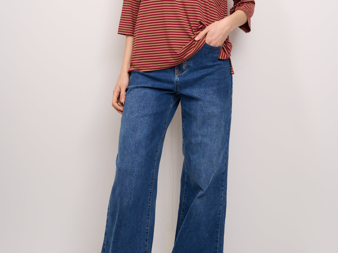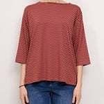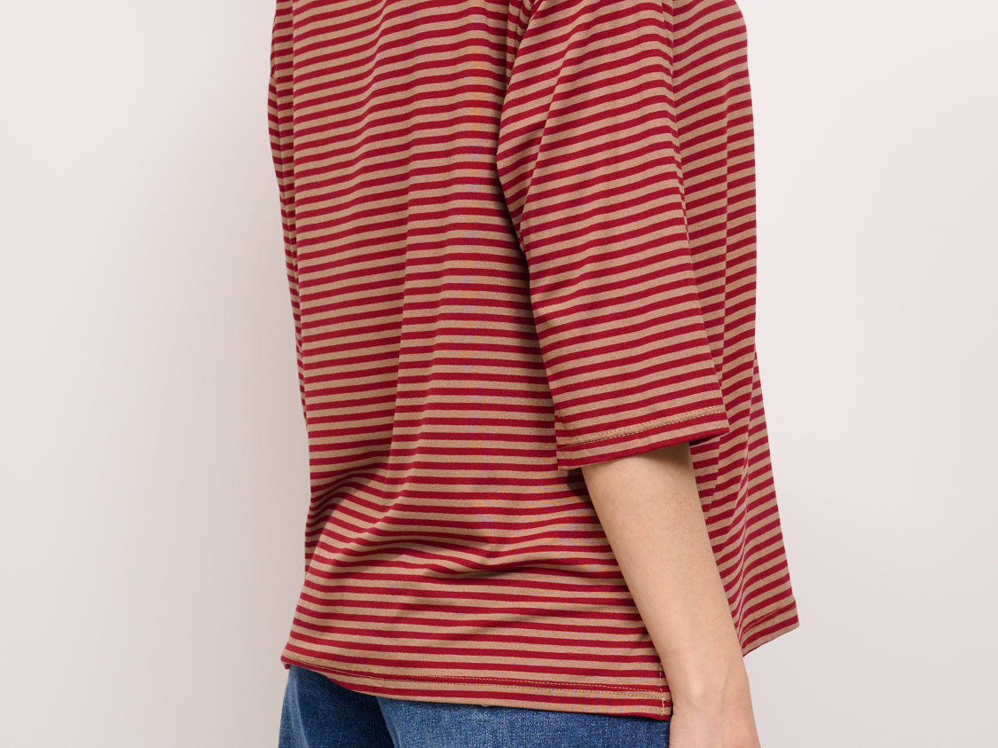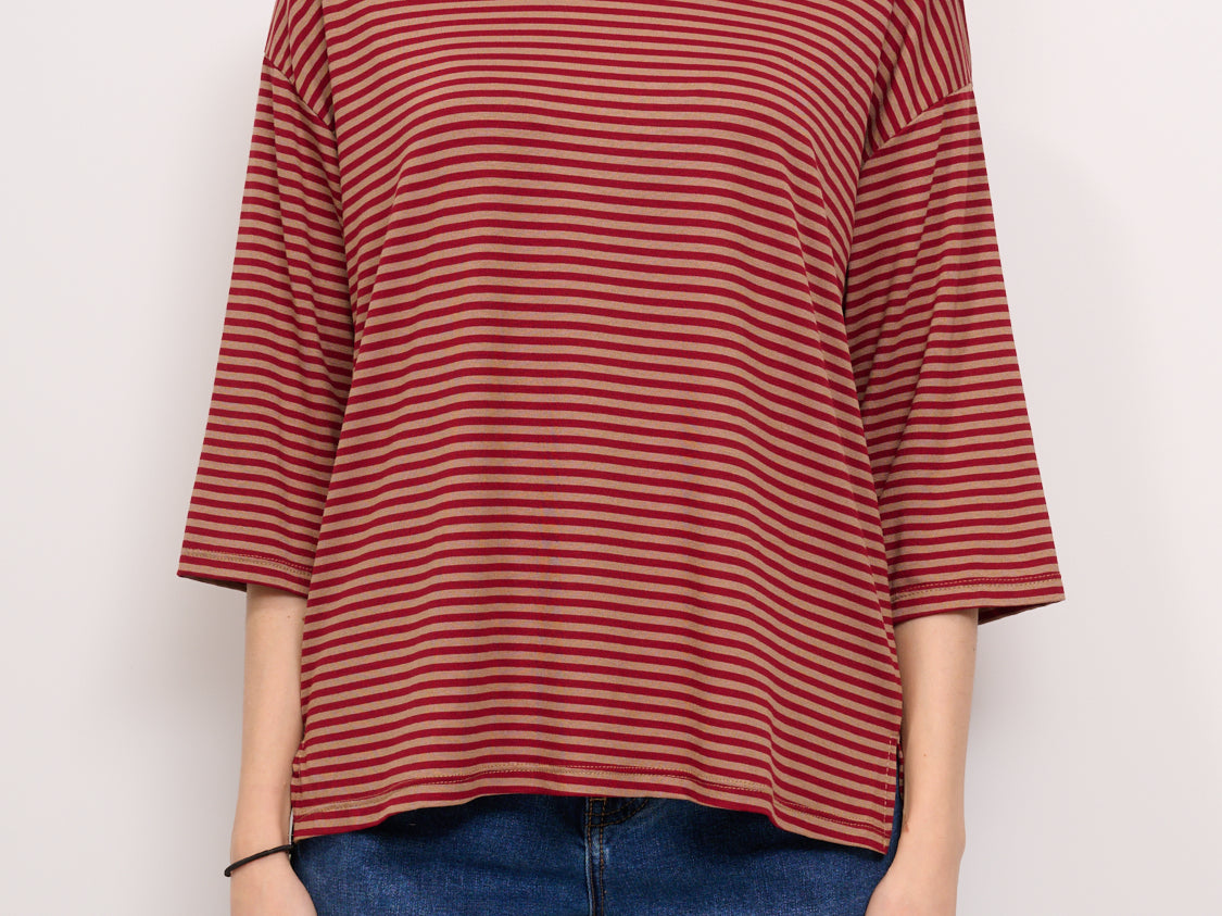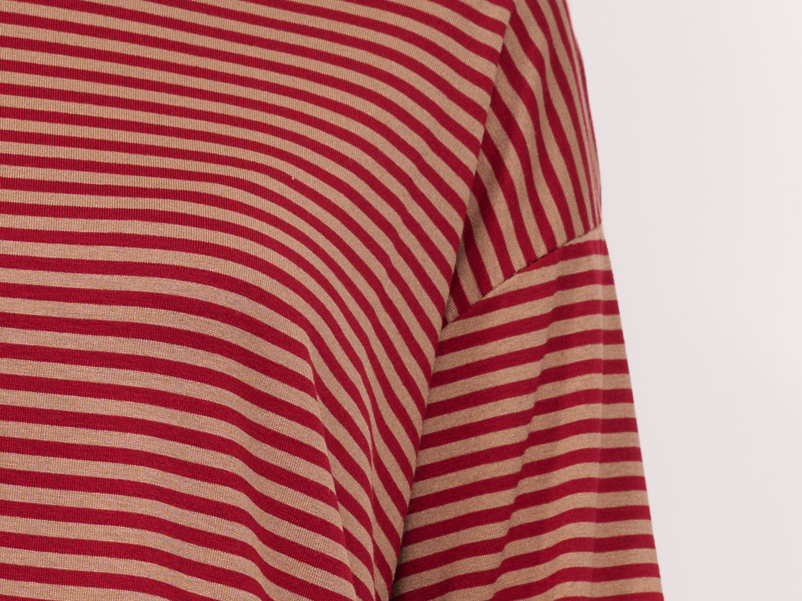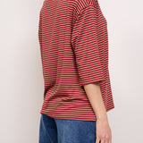 IDENTITY - T-SHIRT MANICA 3/4 RIGATA - ROSSO/CUOIO