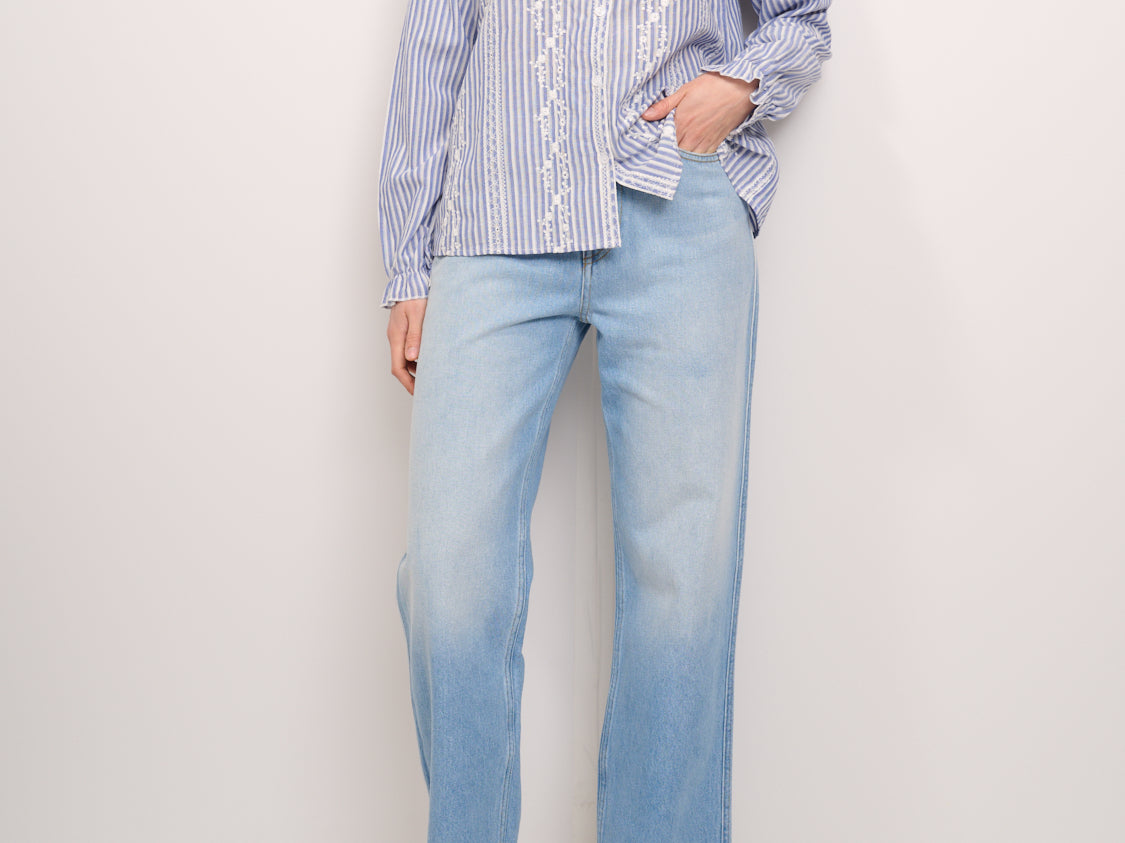 IDENTITY - CAMICIA GIROCOLLO RICAMO - BLU