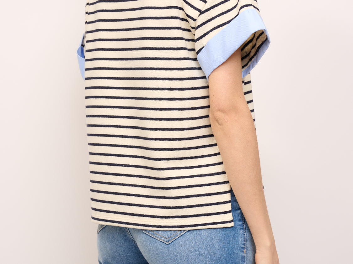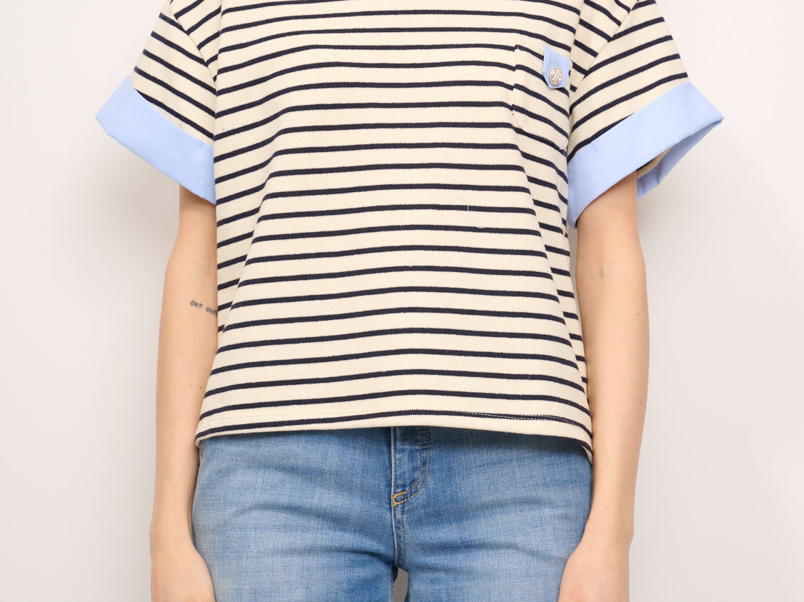 DIXIE - T-SHIRT RIGATA - PANNA/BLU