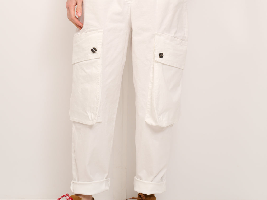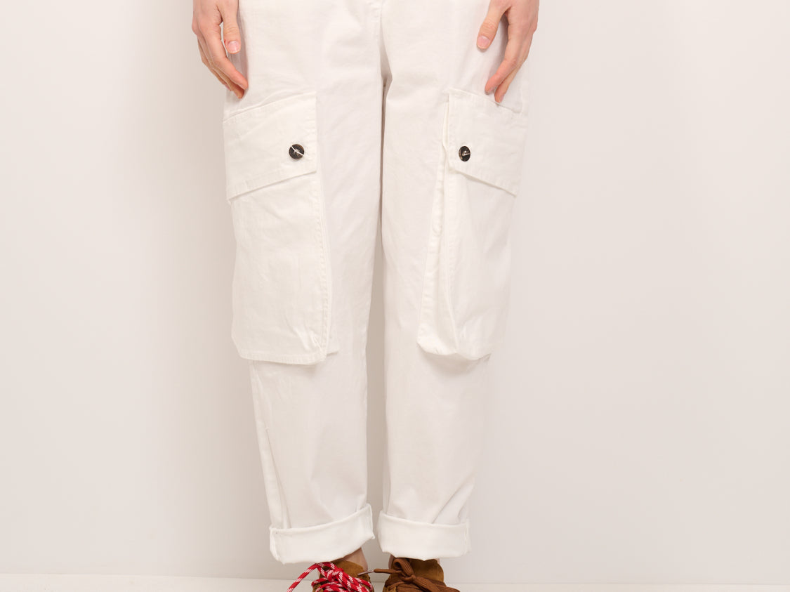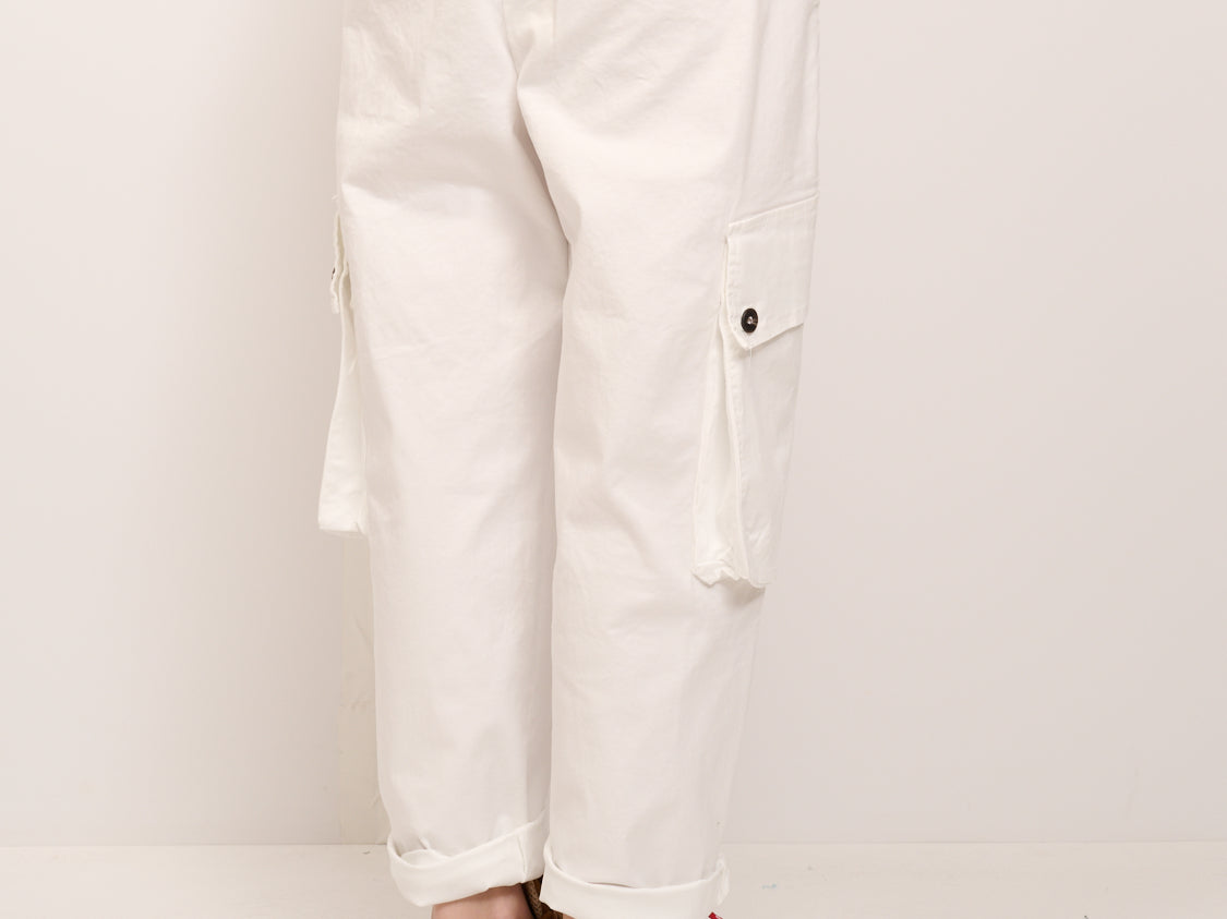 TENSIONE IN - PANTALONE CARGO - BIANCO