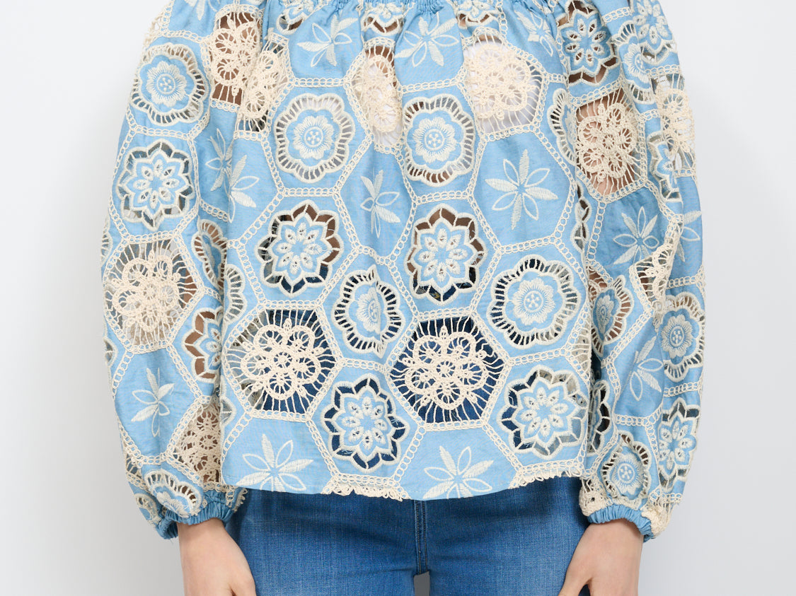 TENSIONE IN - CAMICIA SCOLLATURA ELASTICO - CELESTE