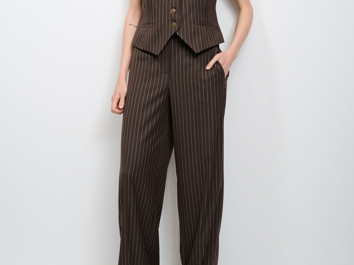 TENSIONE IN - COMPLETO GILET+PANTALONE GESSATO - MORO