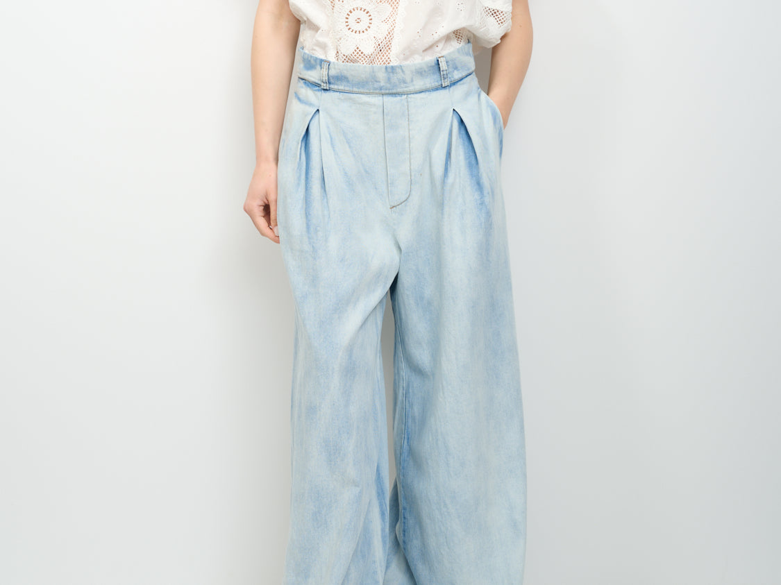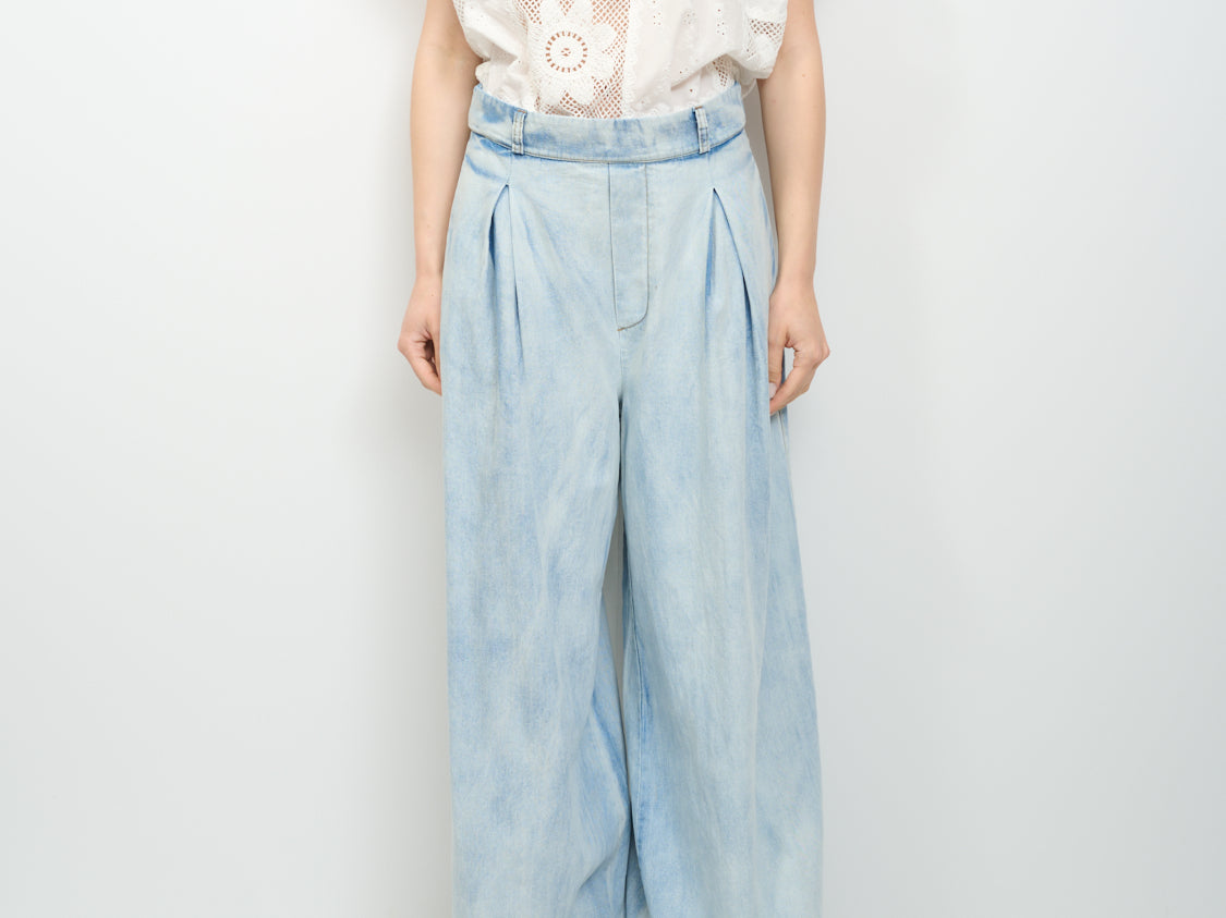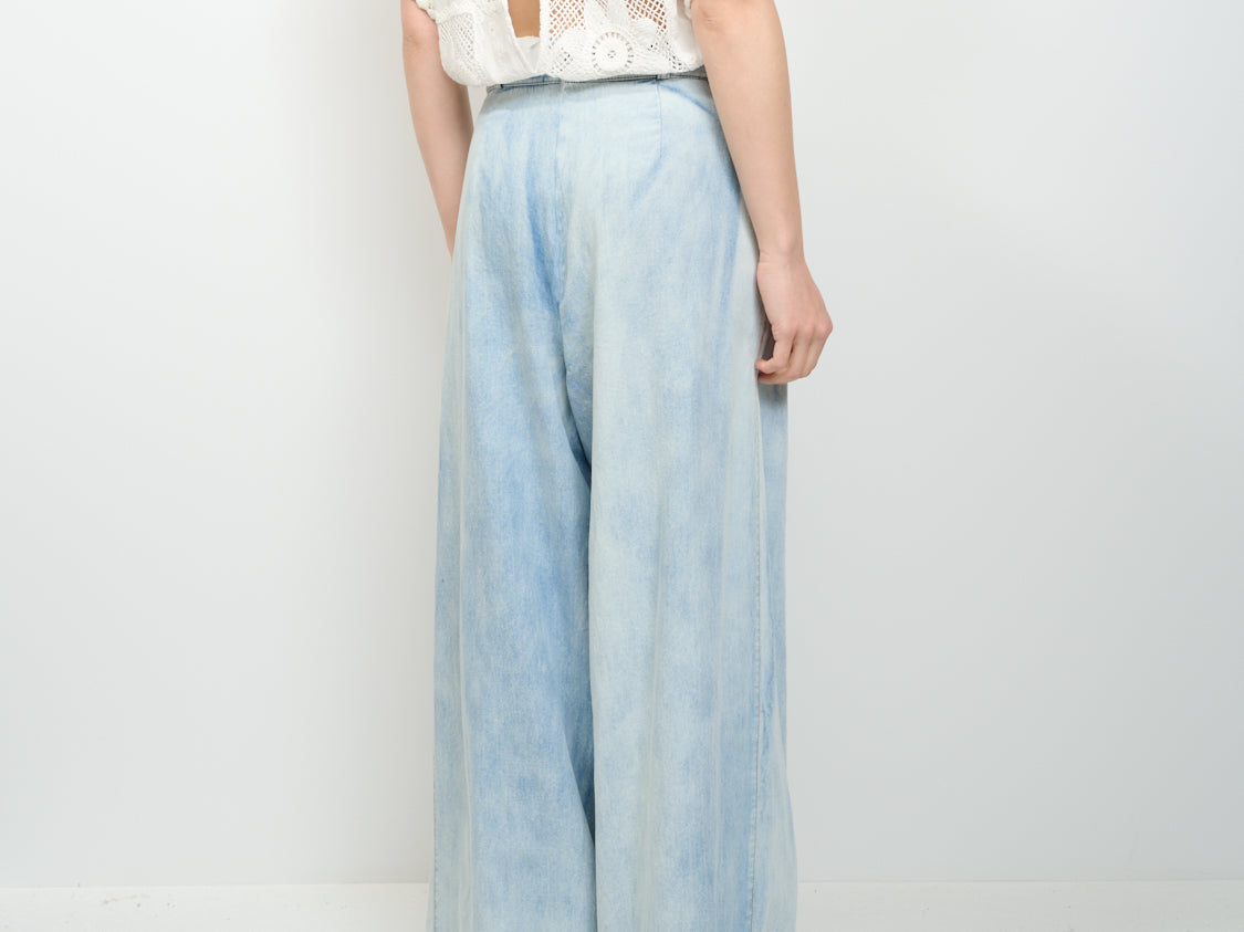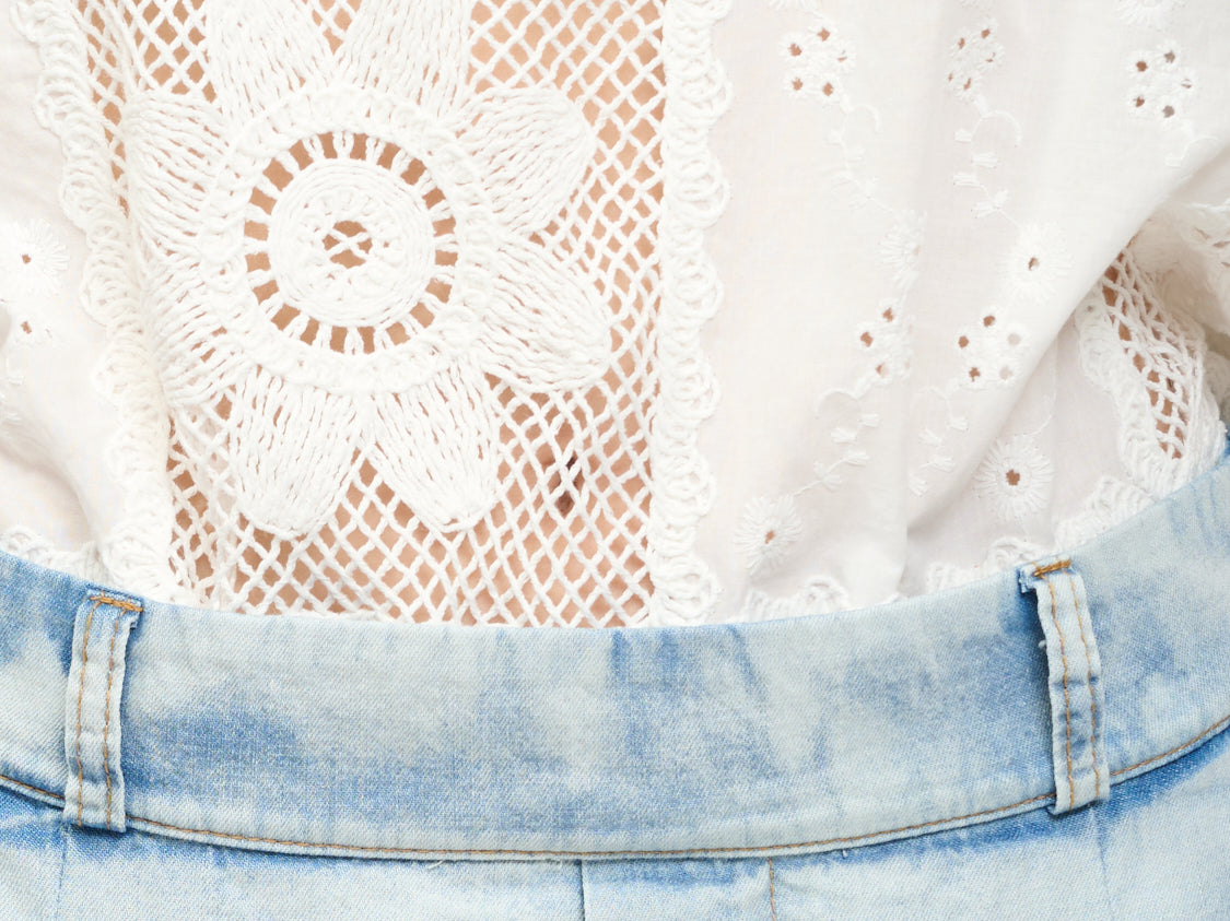 TENSIONE IN - TUTA JEANS+PIZZO - BLU/PANNA