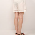 TENSIONE IN - SHORTS ELASTICO INTARSI PIZZO - PANNA