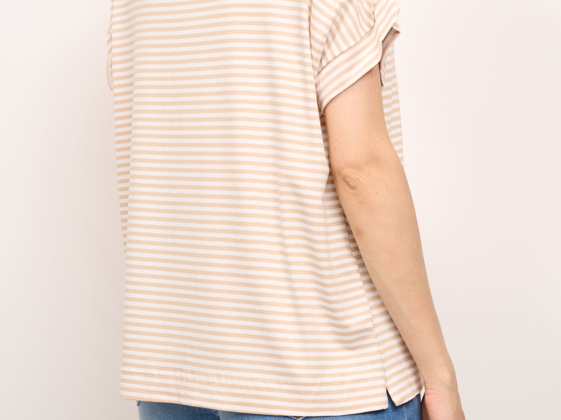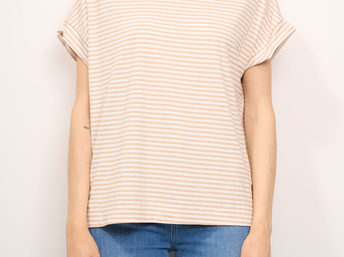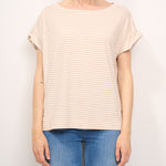 IDENTITY - T-SHIRT MEZZA MANICA RIGATA - BIANCO/BEIGE