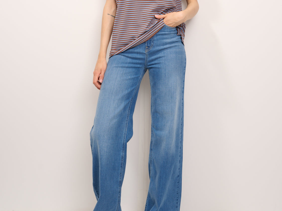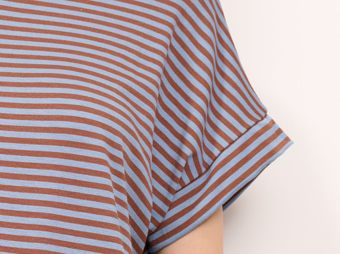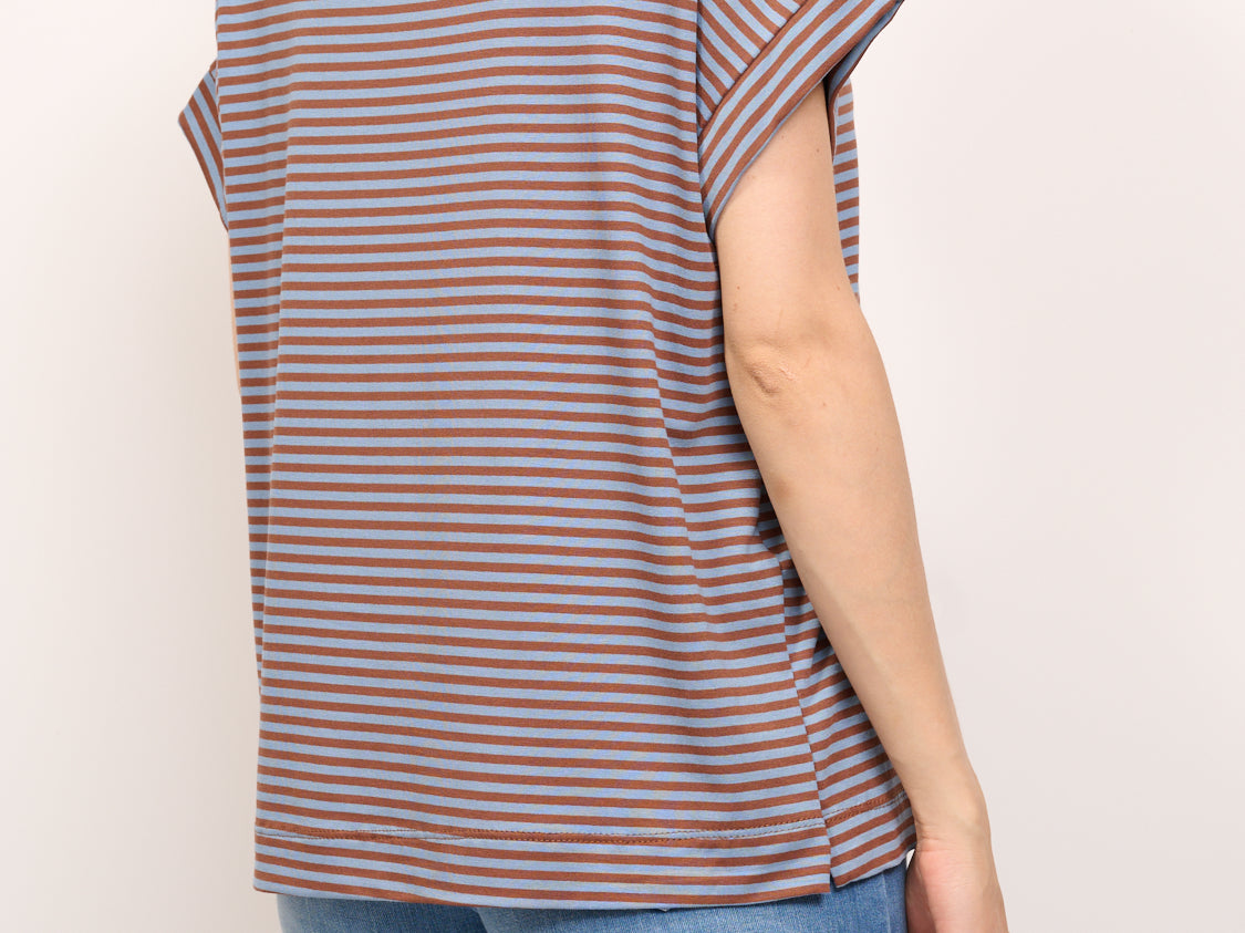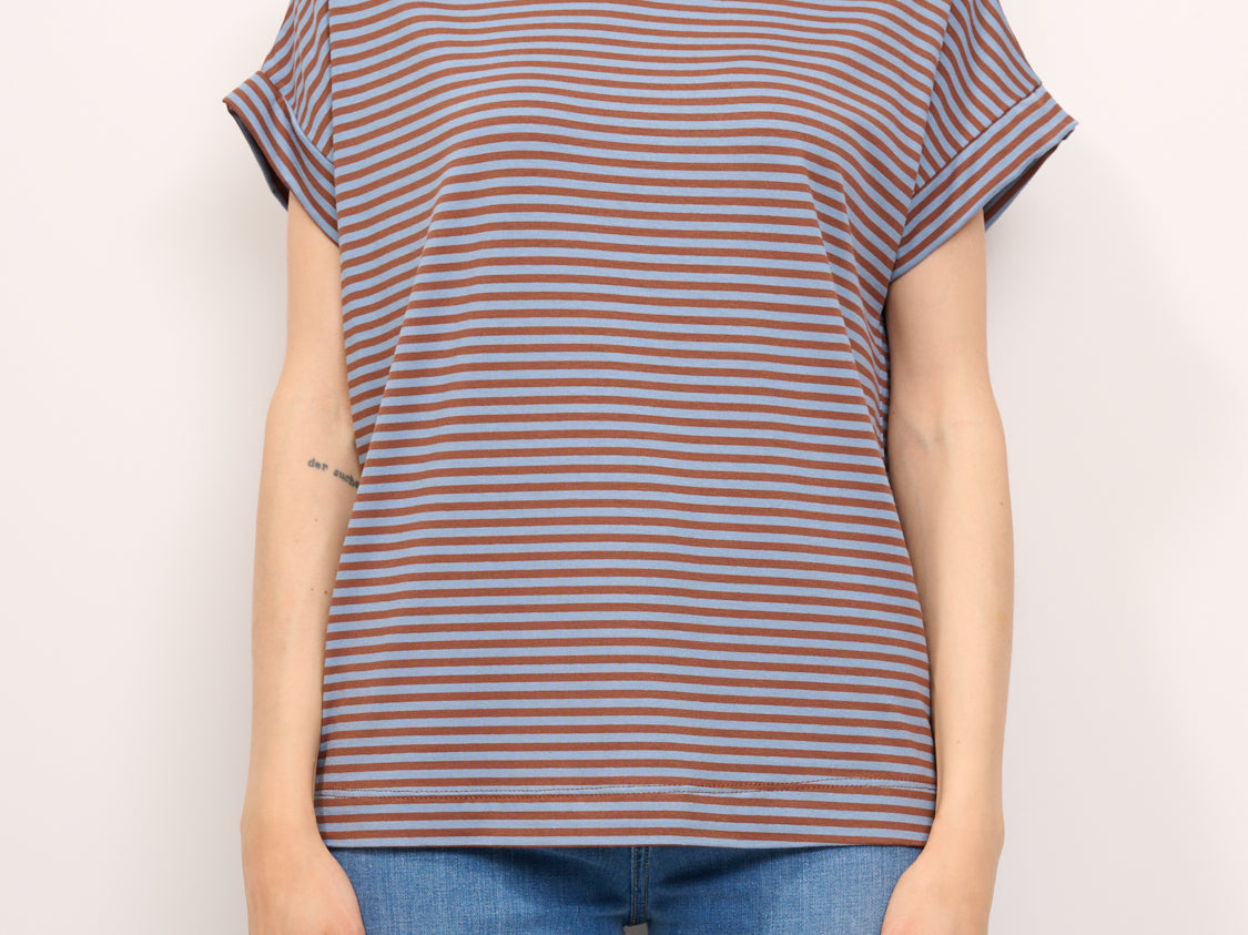 IDENTITY - T-SHIRT MEZZA MANICA RIGATA - CUOIO/JEANS