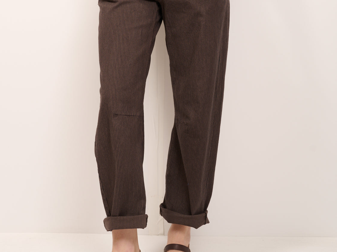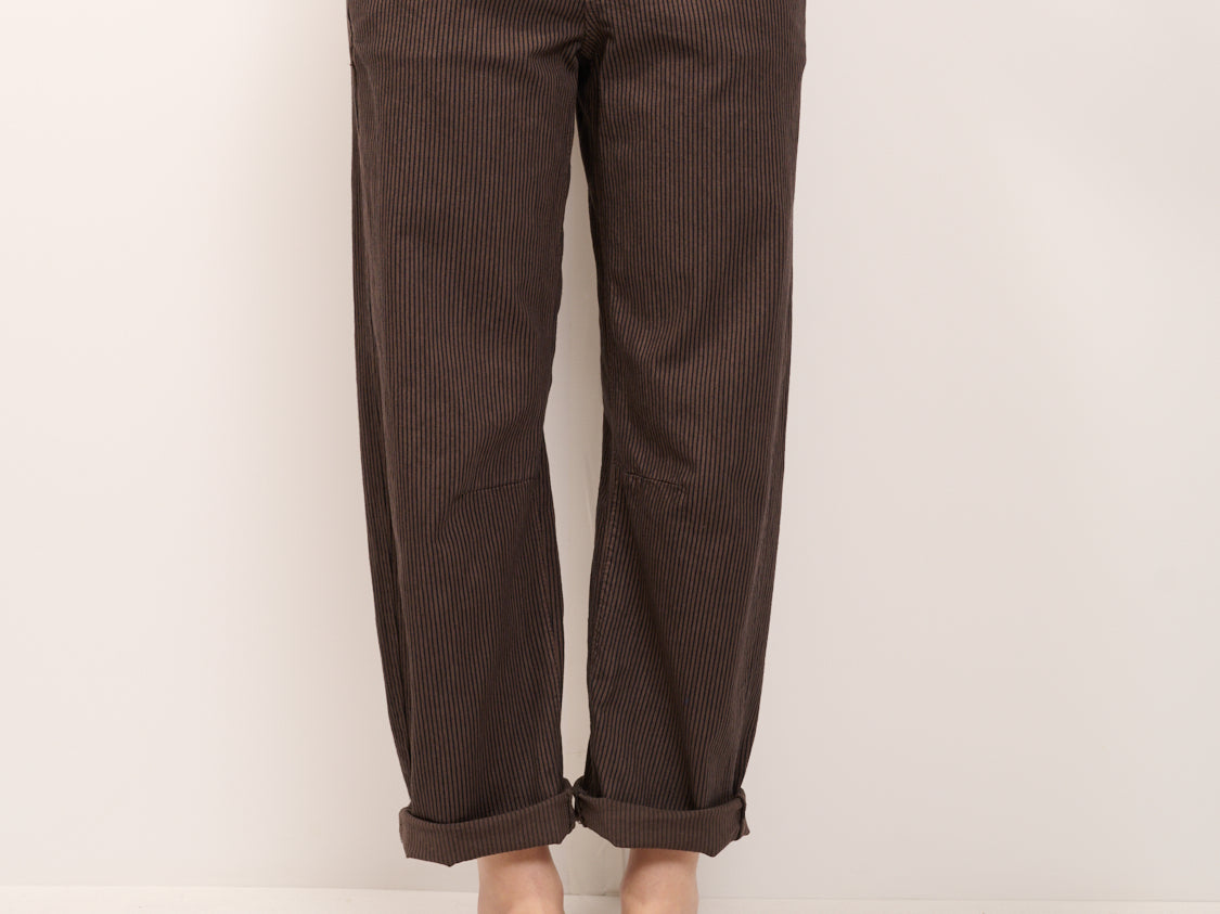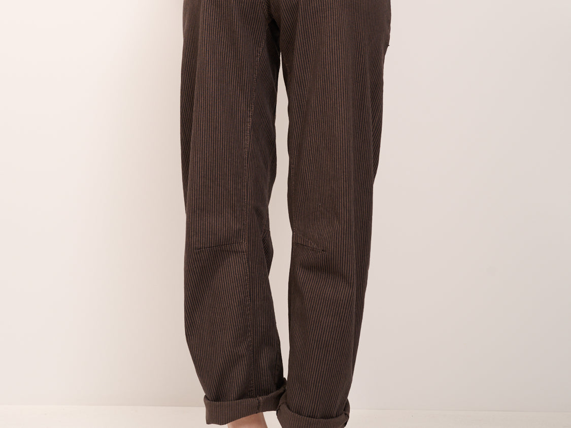 IDENTITY - PANTALONE BOYFIT RIGATO - MORO/NERO