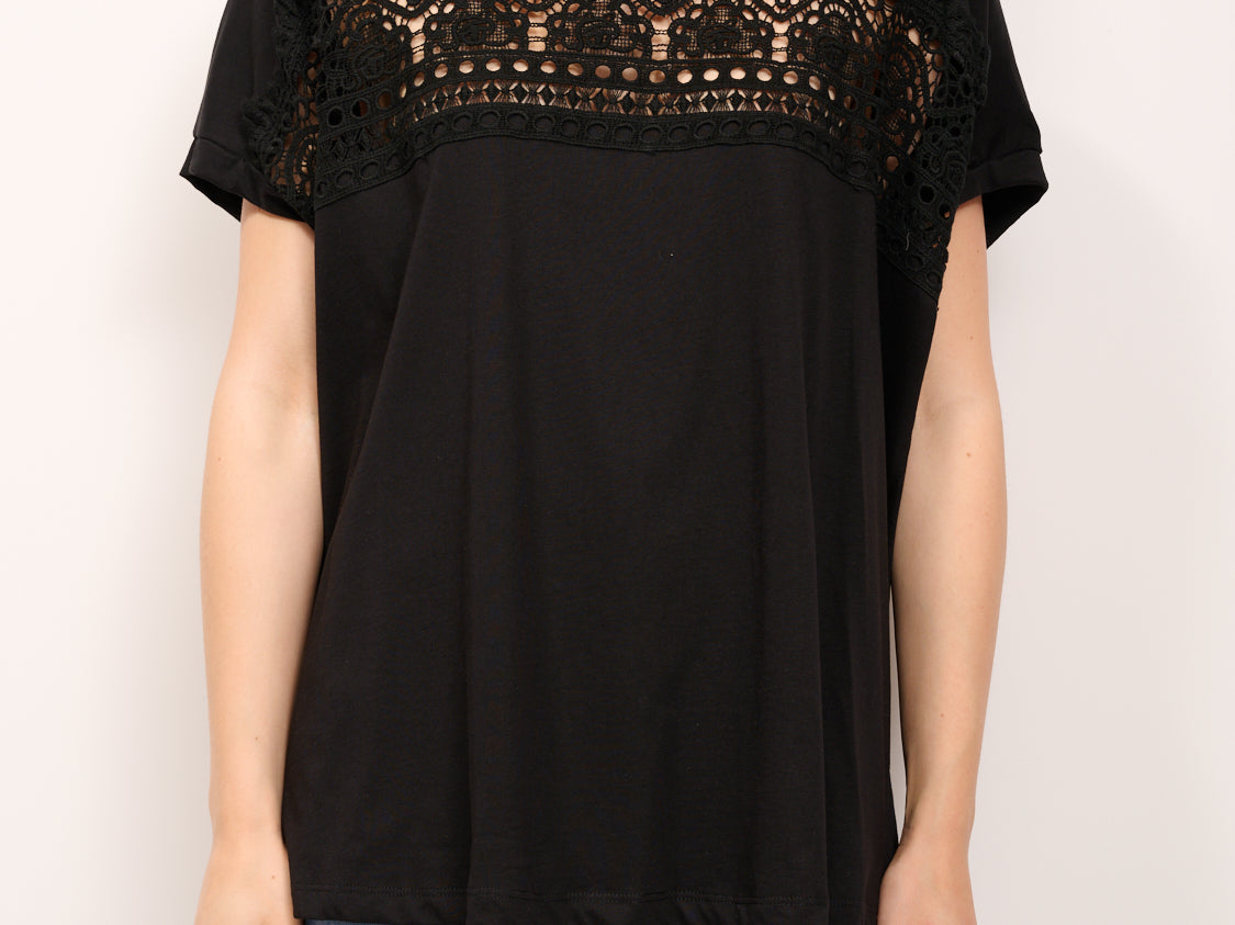 TENSIONE IN - T-SHIRT INSERTI MACRAME' - NERO