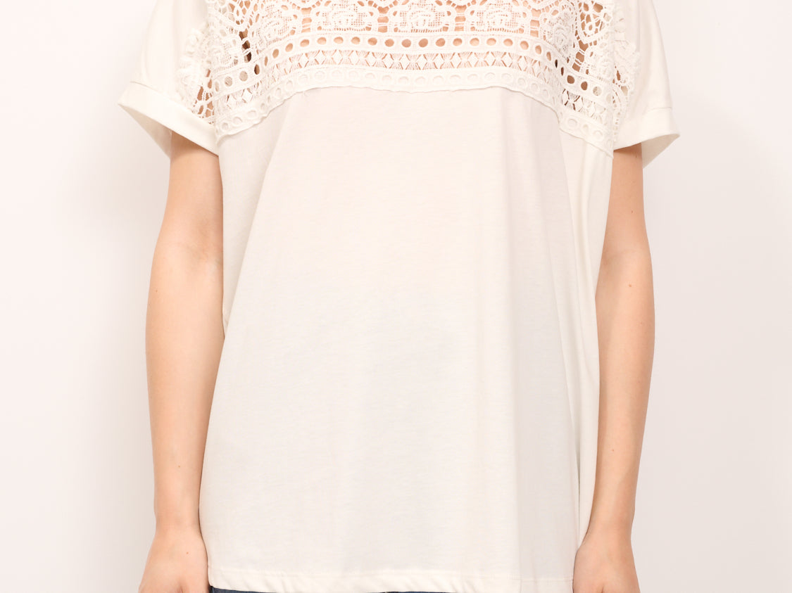 TENSIONE IN - T-SHIRT INSERTI MACRAME' - PANNA