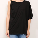 TENSIONE IN - T-SHIRT SPALLA INTRECCIATA - NERO