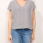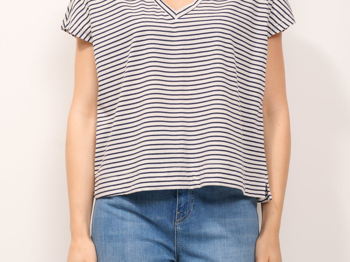 IDENTITY - T-SHIRT RIGATA SCOLLO V - BLU