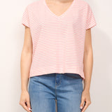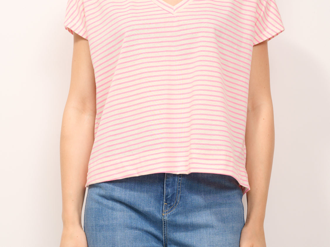 IDENTITY - T-SHIRT RIGATA SCOLLO V - ROSA