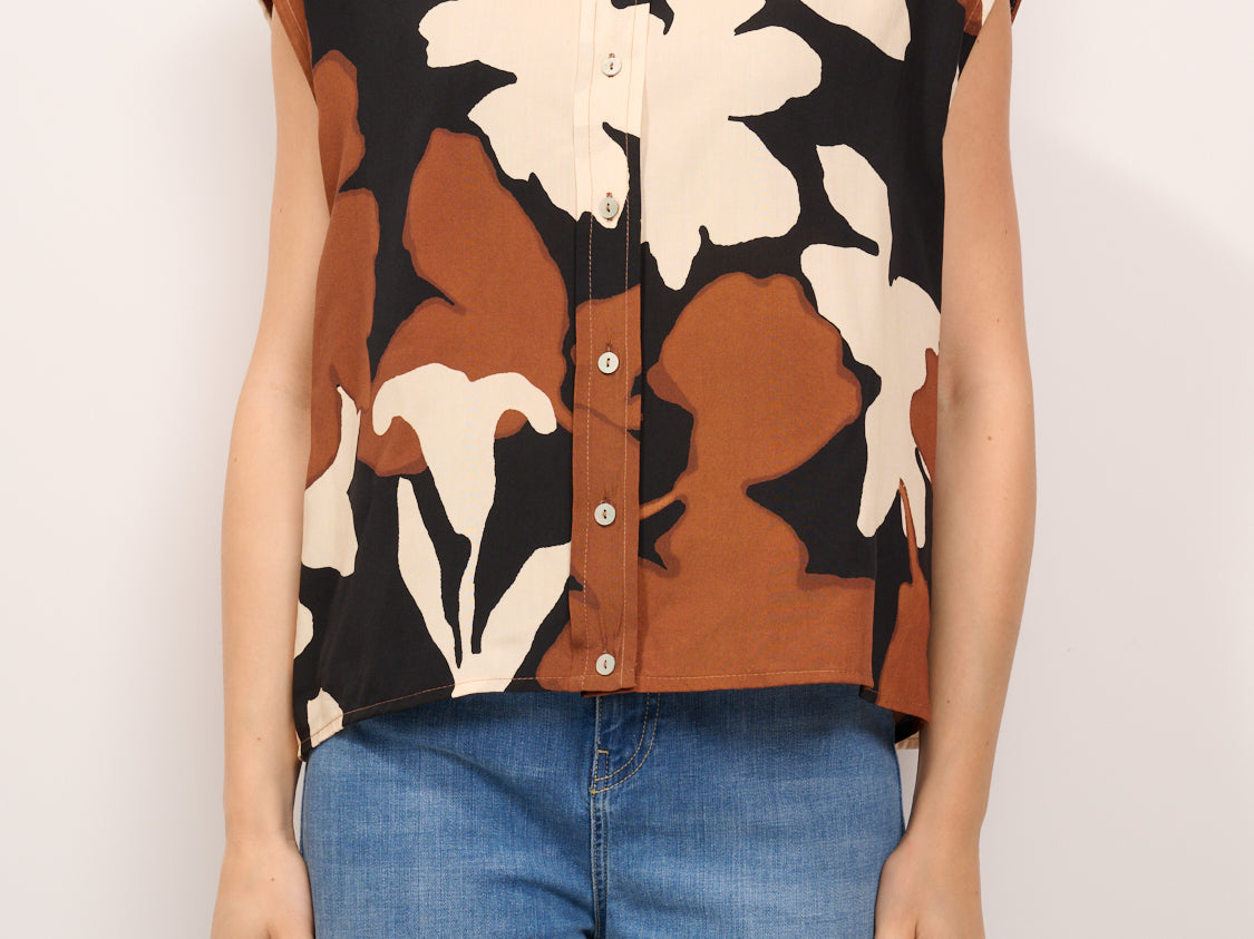 IDENTITY - CAMICIA SMANICATA FANTASIA - CUOIO/NERO/PANNA