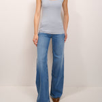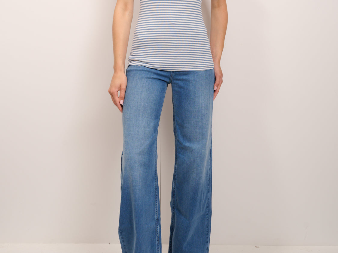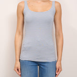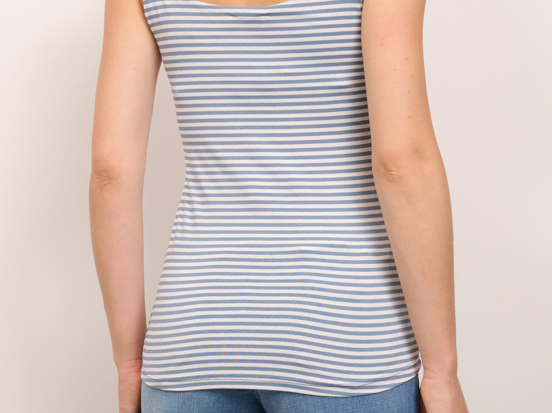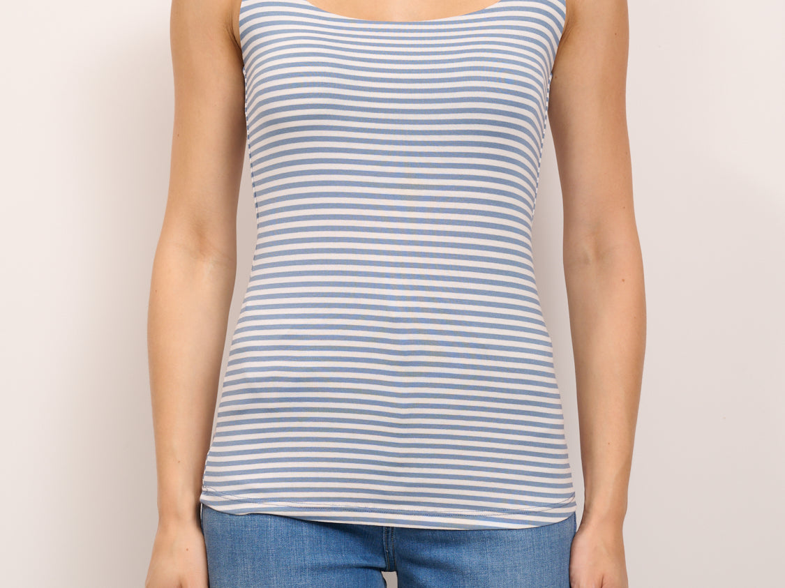 IDENTITY - TOP RIGATO - BIANCO/JEANS