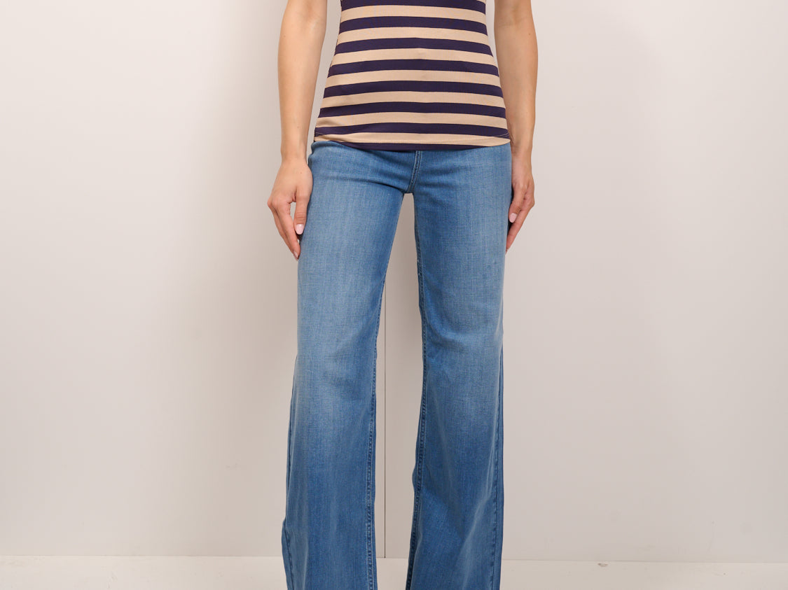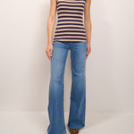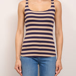 IDENTITY - TOP RIGATO - BEIGE/BLU