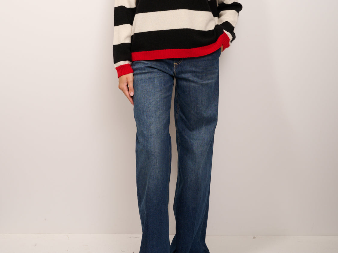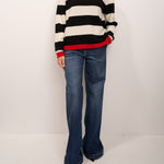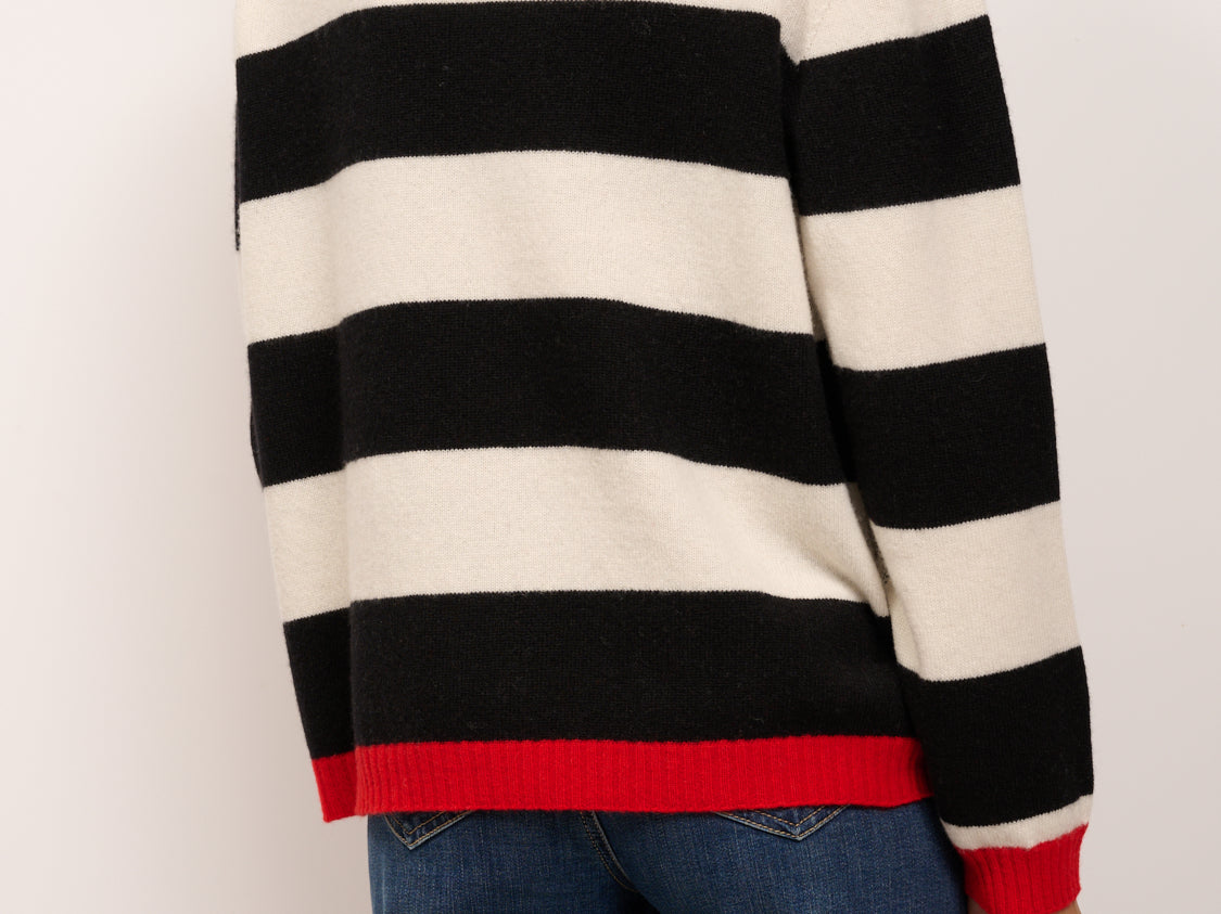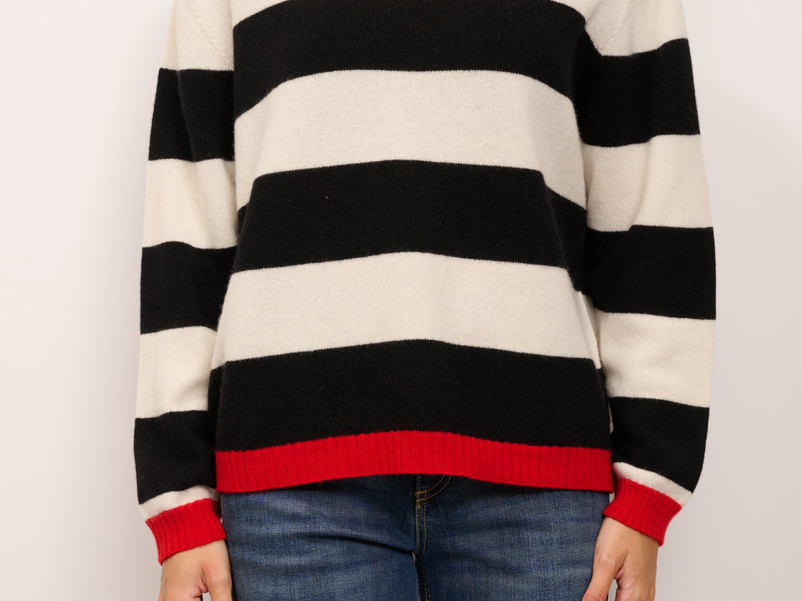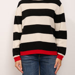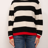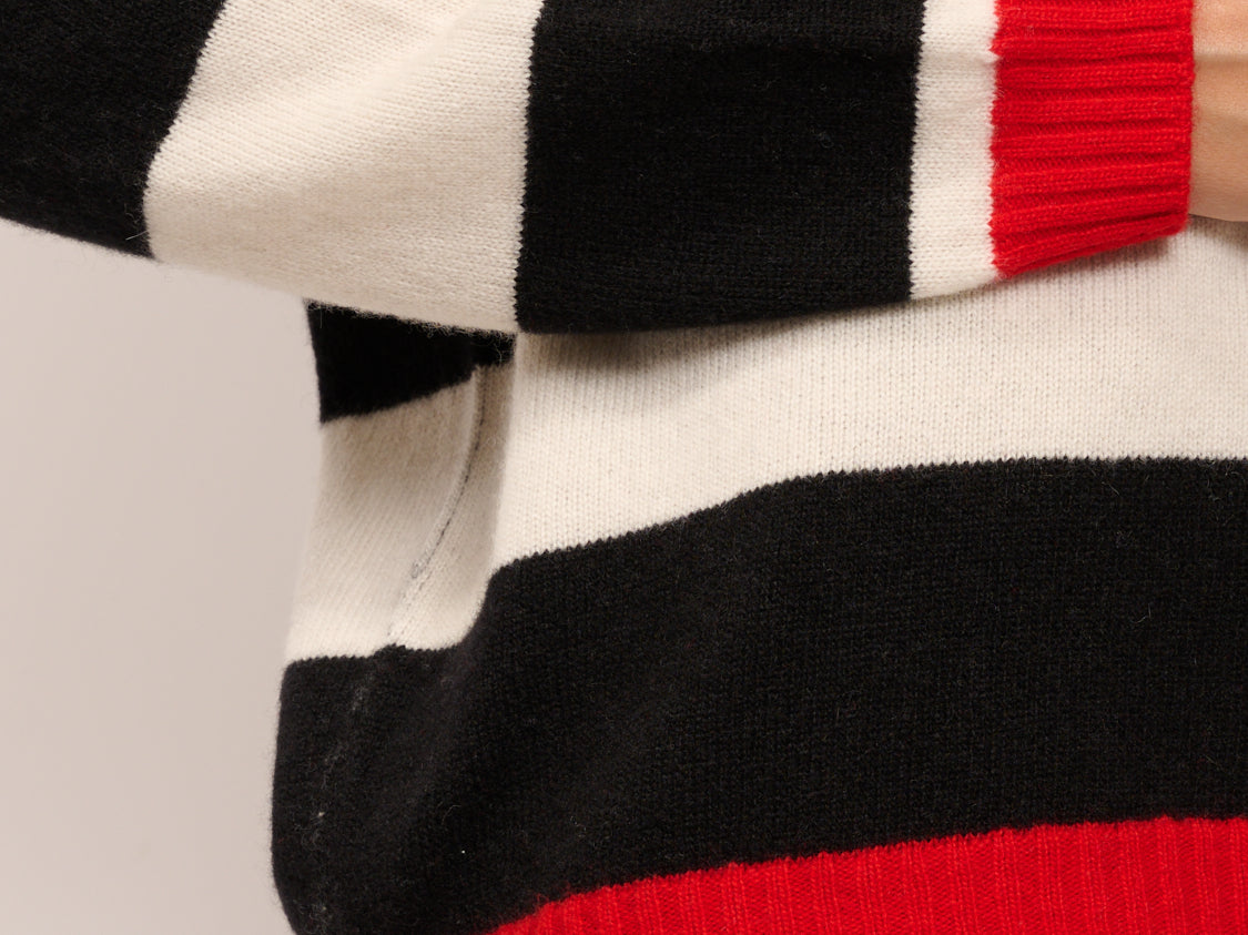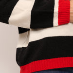 VICOLO - MAGLIA GIROCOLLO RIGA GRANDE - NERO/BIANCO/ROSSO